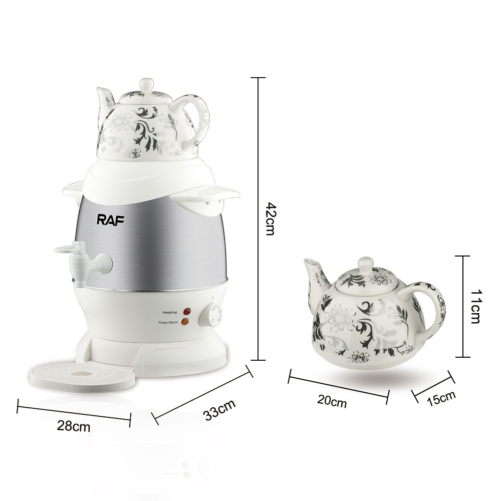 Электрический самовар 2 в 1 на 6 л с фарфоровым заварным чайником на 1 л. RAF R.7115 Электросамовар с заварником черный