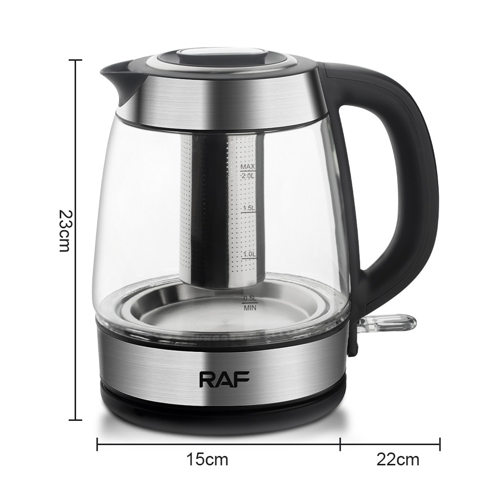 Стеклянный электрочайник RAF R.7922 объемом 2 л с металлическим фильтром, 2000 Вт