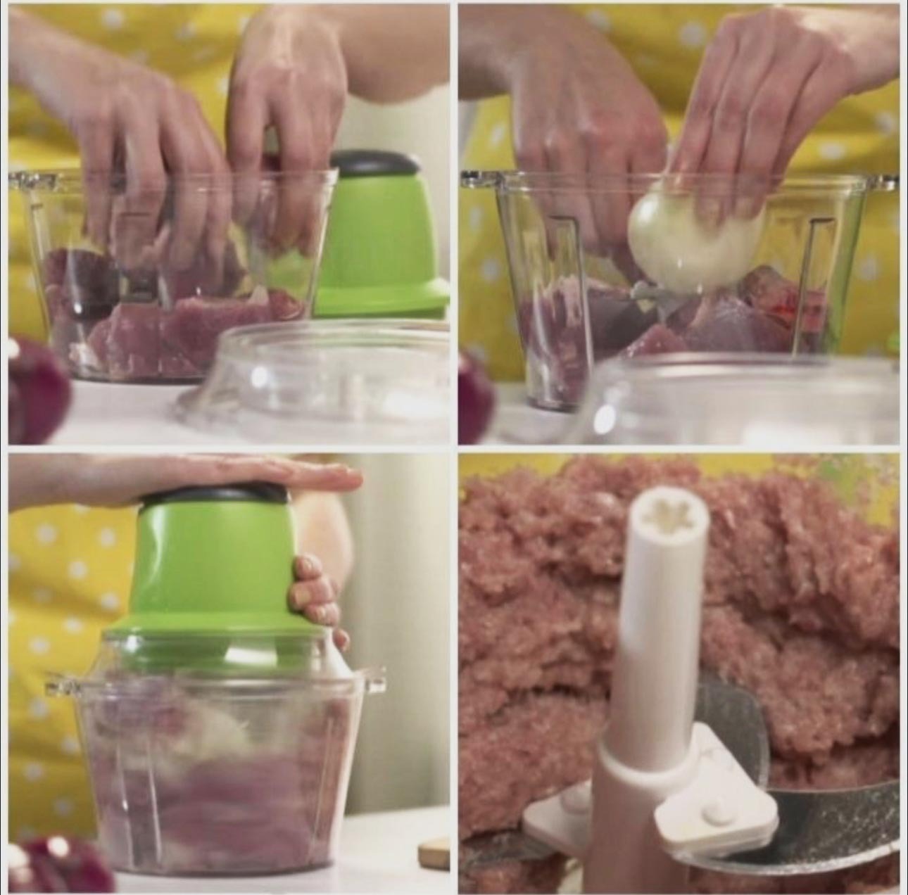 Электрический переключатель находится на верхней крышке, чтобы размолоть продукты до состояния пюре, нажмите кнопку «Рress» и удерживайте до состояния готовности.