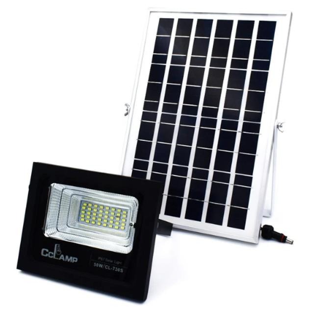 Водостойкий уличный прожектор с солнечной панелью на 50 Вт Cclamp CL-730 - это энергоэффективный и удобный источник освещения для наружного использования. Он оснащен встроенной солнечной панелью, которая позволяет заряжать внутренний аккумулятор днем и обеспечивать освещение в течение ночи.