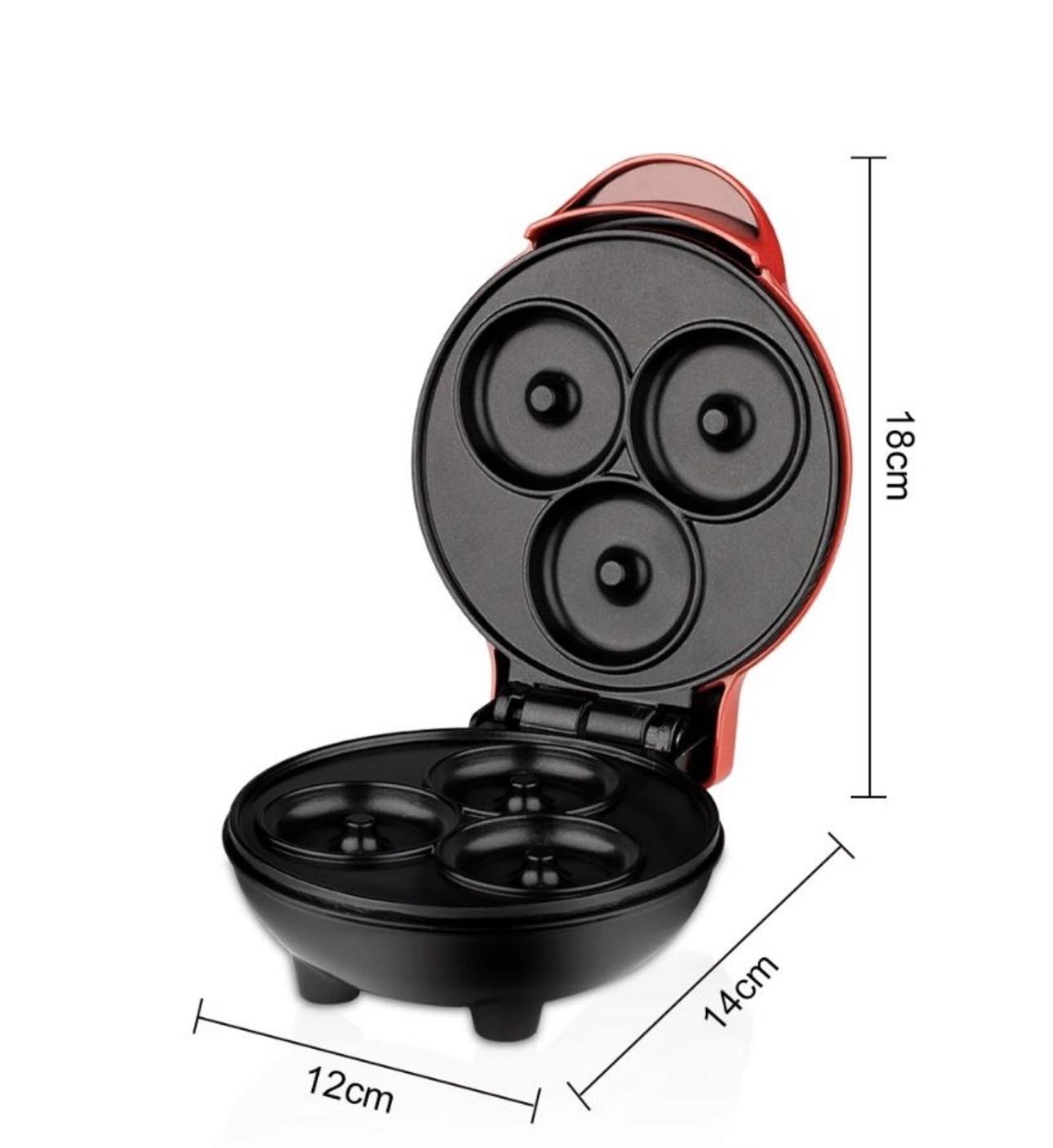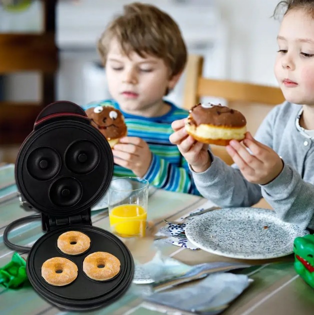 Аппарат для приготовления пончиков для изготовления бисквитов и пончиков имеет антипригарное покрытие и может приготовить 3 пончика за достаточно короткое время.