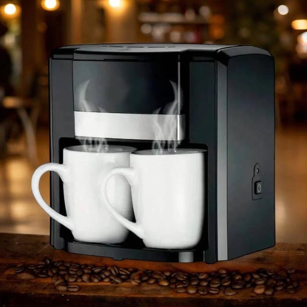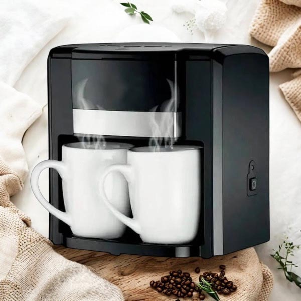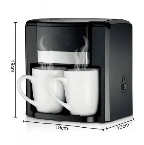 Кофемашина капельная на две чашки, электрическая мощная бытовая кофеварка для дома и офиса, 650W