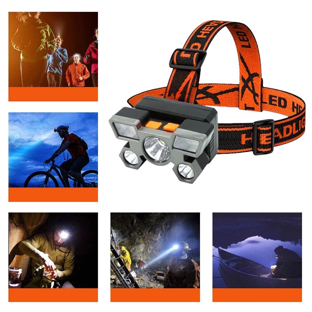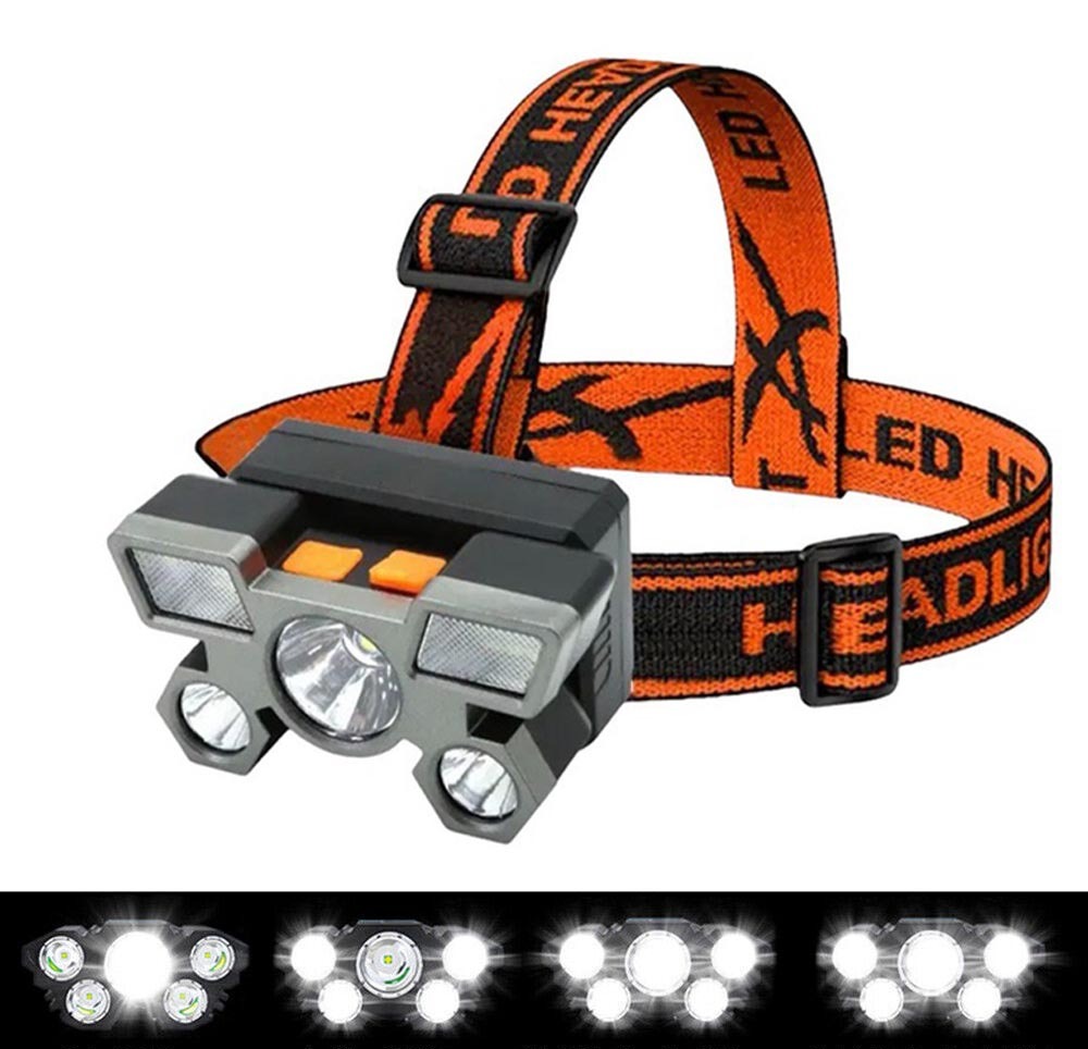 Налобный фонарь аккумуляторный с 5 светодиодами, USB зарядкой и 4 режимами свечения