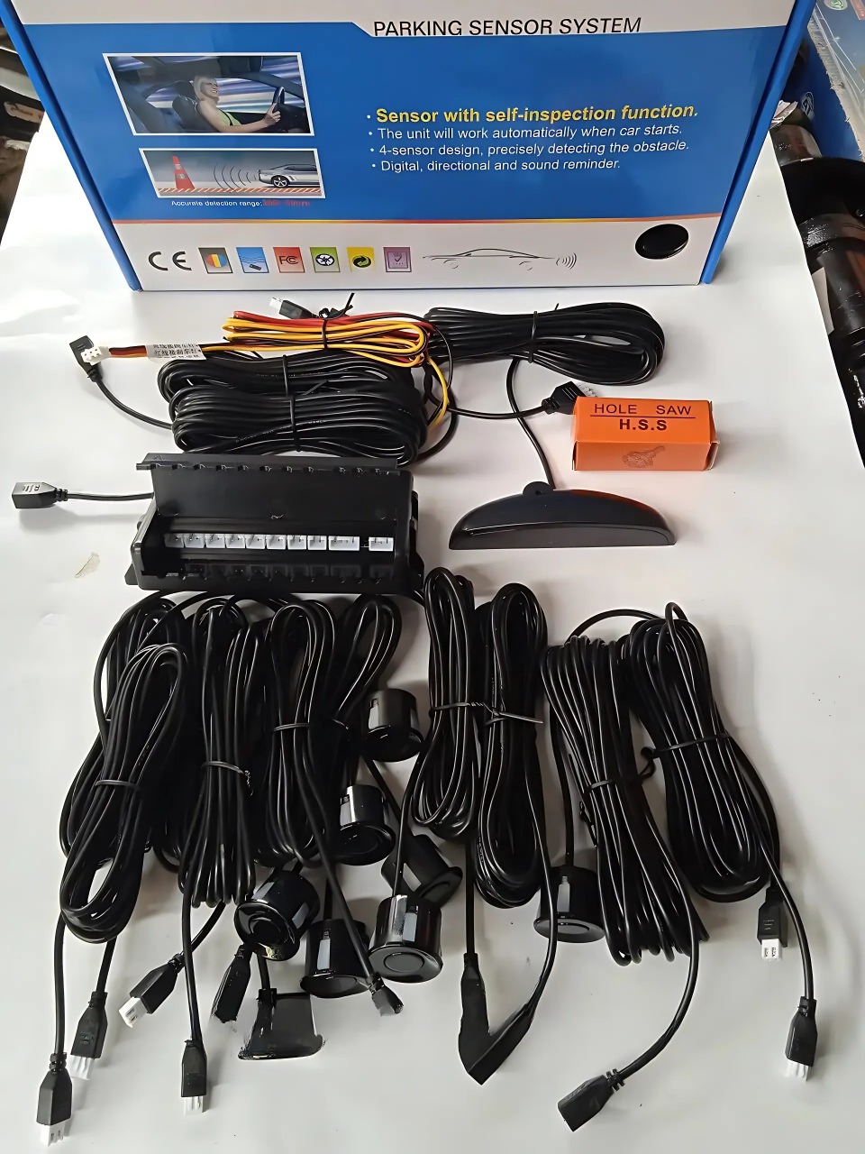 8 врезных датчиков парковки, предназначенных для установки в передний и заднем бампер.