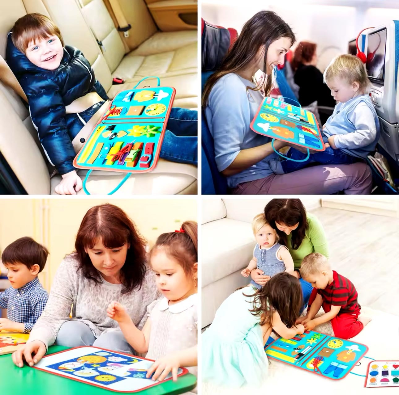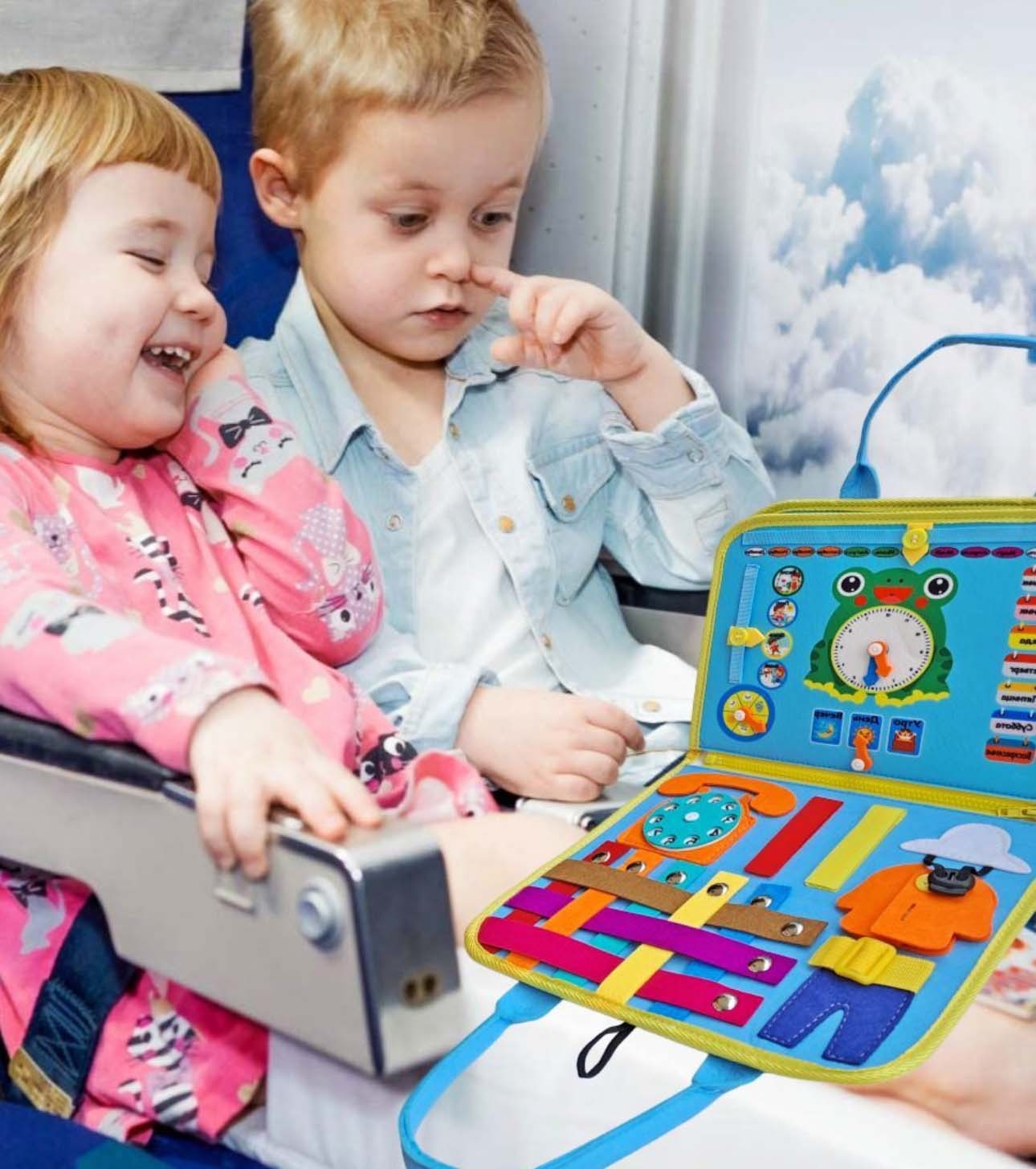 Развивающая сенсорная доска для занятий малышами, которая поможет им занять себя в машине, самолете, путешествии или в других местах, где требуется тишина.