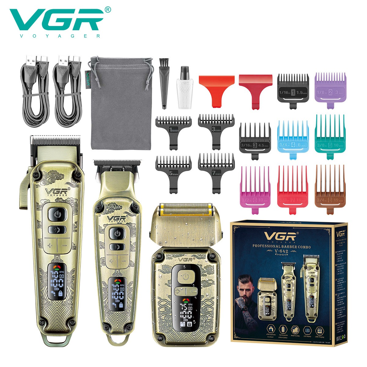 Аккумуляторная машинка для стрижки волос и бороды 3 в 1 VGR V-642, беспроводная, лезвия из нержавеющей стали