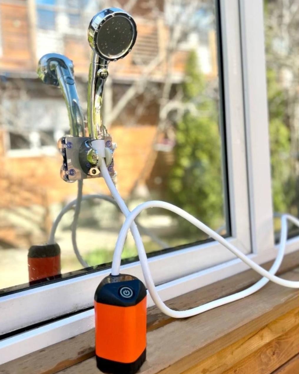 Портативный электрический душ — компактная система автономного водоснабжения, которая обеспечивает комфортные водные процедуры в любых условиях: на даче, в походе, в кемпинге, на рыбалке или при отсутствии водопровода. Встроенный аккумулятор 4800 мАч обеспечивает бесперебойную работу до 60 минут. Насос создает стабильное давление воды, а встроенная фильтрация защищает от попадания мелких загрязнений.