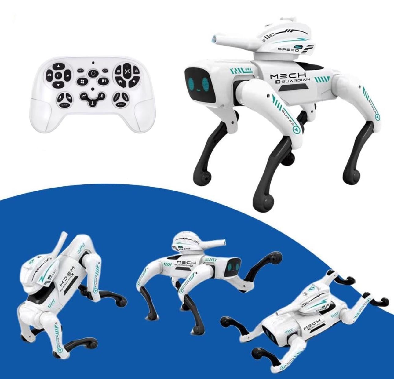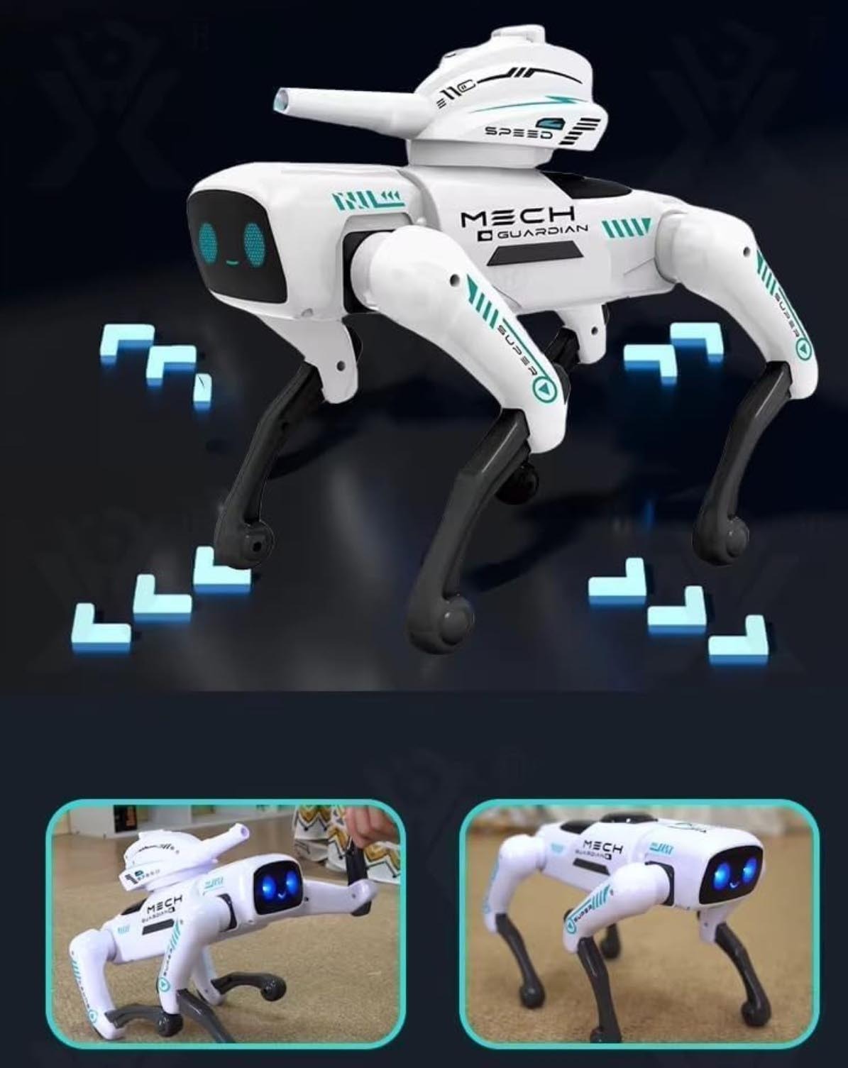 Робот-собака Mech Guardian (QF660-2) — это умный интерактивный питомец нового поколения, созданный для развлечения и обучения детей. Управляется с помощью пульта дистанционного управления или голосовых команд, реагируя на инструкции и выполняя более 20 различных функций: ходит, танцует, поёт, подаёт голос, крутится и даже выражает эмоции. Игрушка развивает творческое и логическое мышление, а также знакомит ребёнка с базовыми принципами робототехники и программирования. Перезаряжаемый аккумулятор обеспечивает длительное время игры без необходимости часто менять батарейки.
