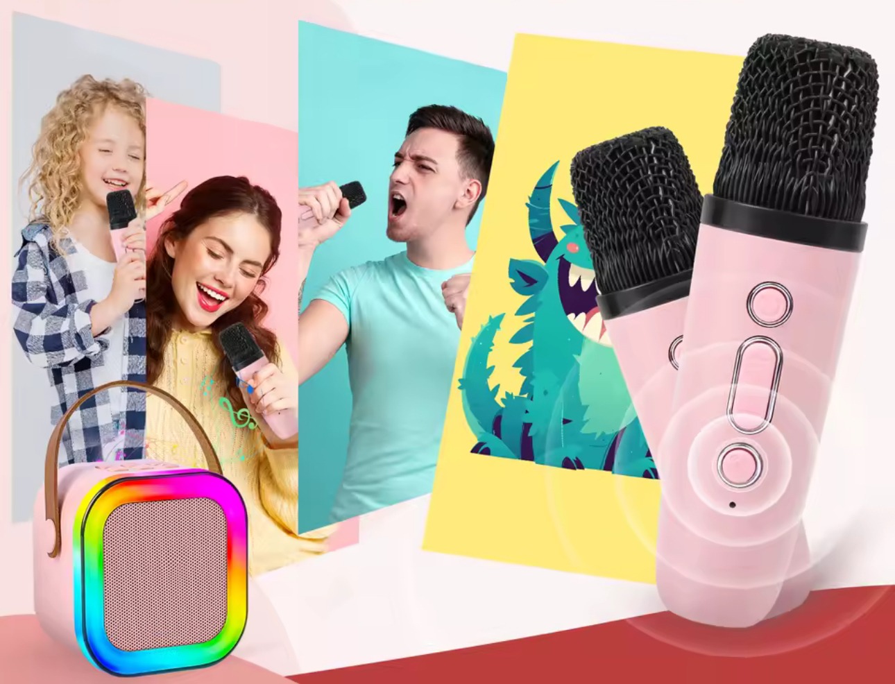 K12 — это компактная Bluetooth-караоке акустика с мощным чистым звучанием, яркой RGB-подсветкой и двумя беспроводными микрофонами. Идеально подходит для домашних вечеринок, детских праздников, стримов, уличных выступлений и караоке. Легкая, портативная, с удобной ручкой, поддержкой Bluetooth и простым подключением — всё работает «из коробки». Микрофоны дают чистый голос без шумов, а динамик наполняет комнату качественным объёмным звучанием. Отлично подходит как подарок.