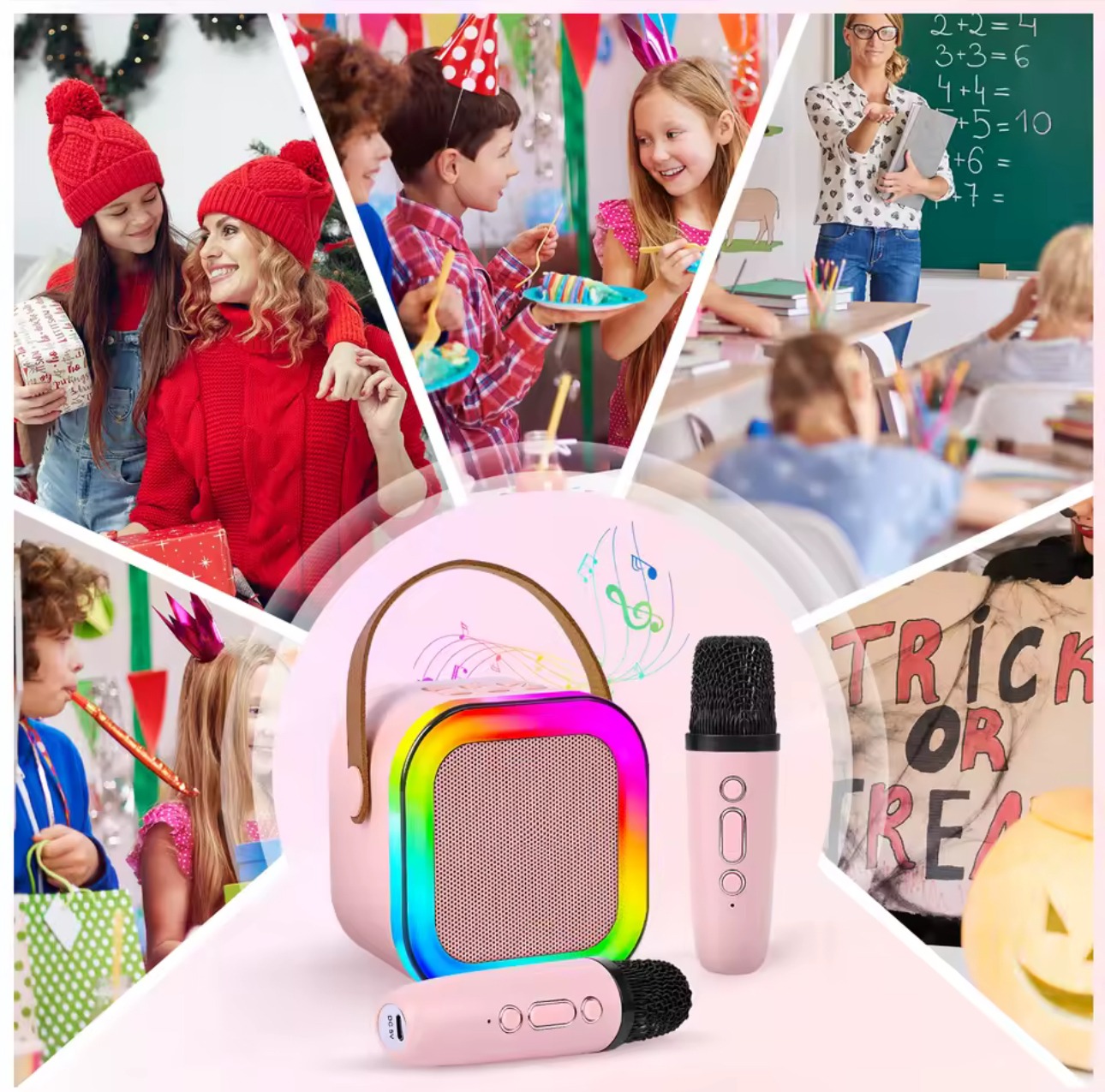 Портативная Bluetooth-караоке колонка K12 с RGB-подсветкой + 2 беспроводных микрофона — мини-саундбар для дома, детей, вечеринок и стримов