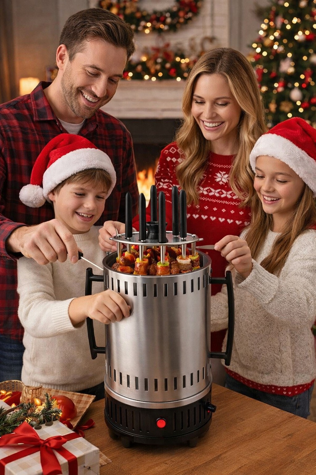 Вертикальная электрошашлычница на 6 шампуров мощностью 1000 Вт — удобное решение для приготовления сочного шашлыка в домашних условиях без дыма и открытого огня. Благодаря вертикальной конструкции мясо равномерно прожаривается со всех сторон, сохраняя сочность и натуральный вкус. Корпус из нержавеющей стали устойчив к нагреву и легко очищается после использования. Устройство подходит для приготовления мяса, курицы, рыбы и овощей, позволяя наслаждаться шашлыком в любое время года прямо на кухне.
