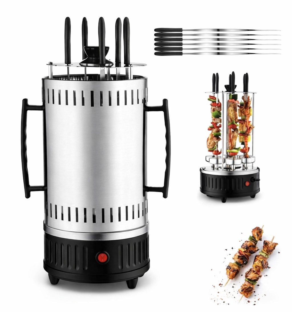 Электрошашлычница вертикальная на 6 шампуров 1000 Вт из нержавеющей стали