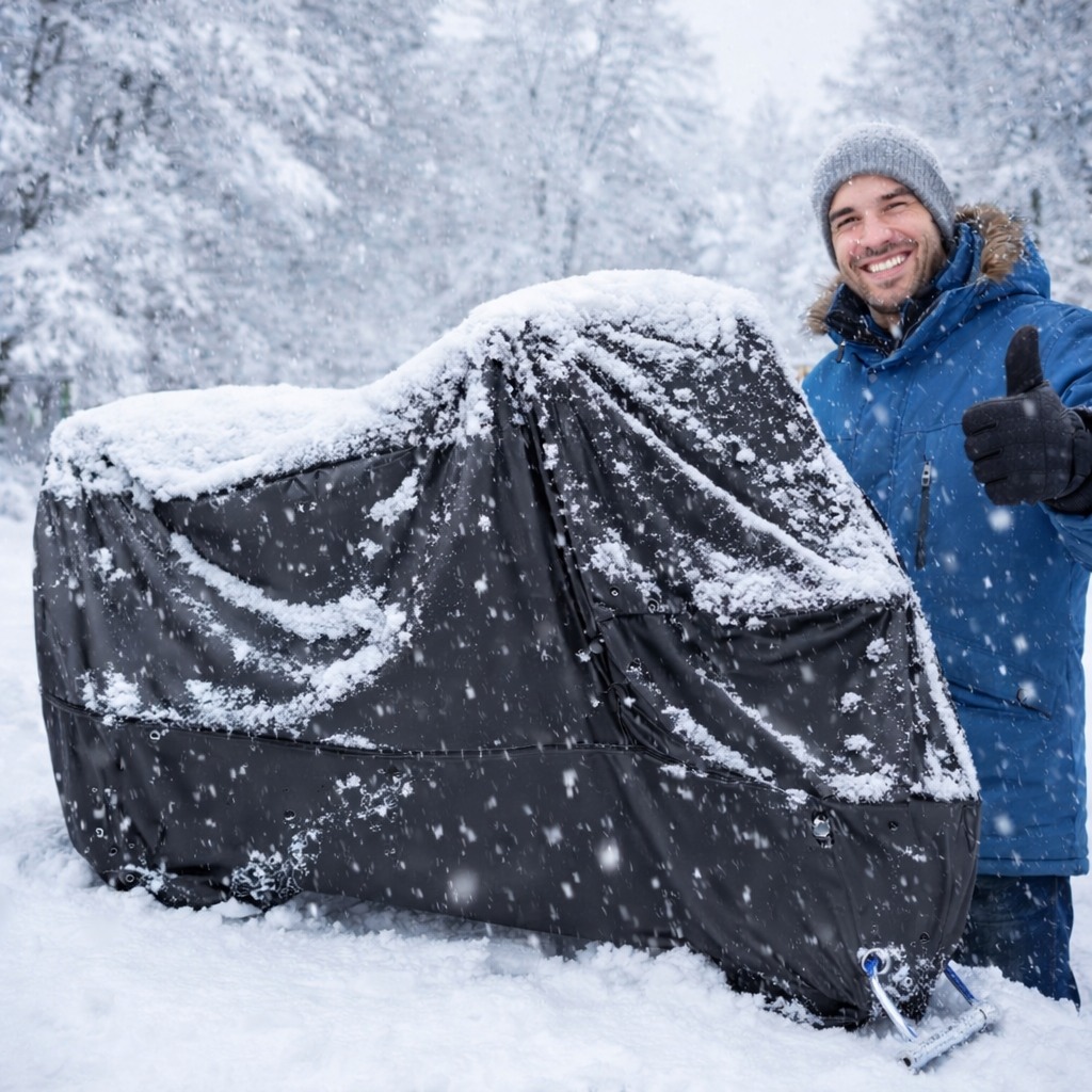 - Водонепроницаемый материал защищает мотоцикл от дождя и влаги
