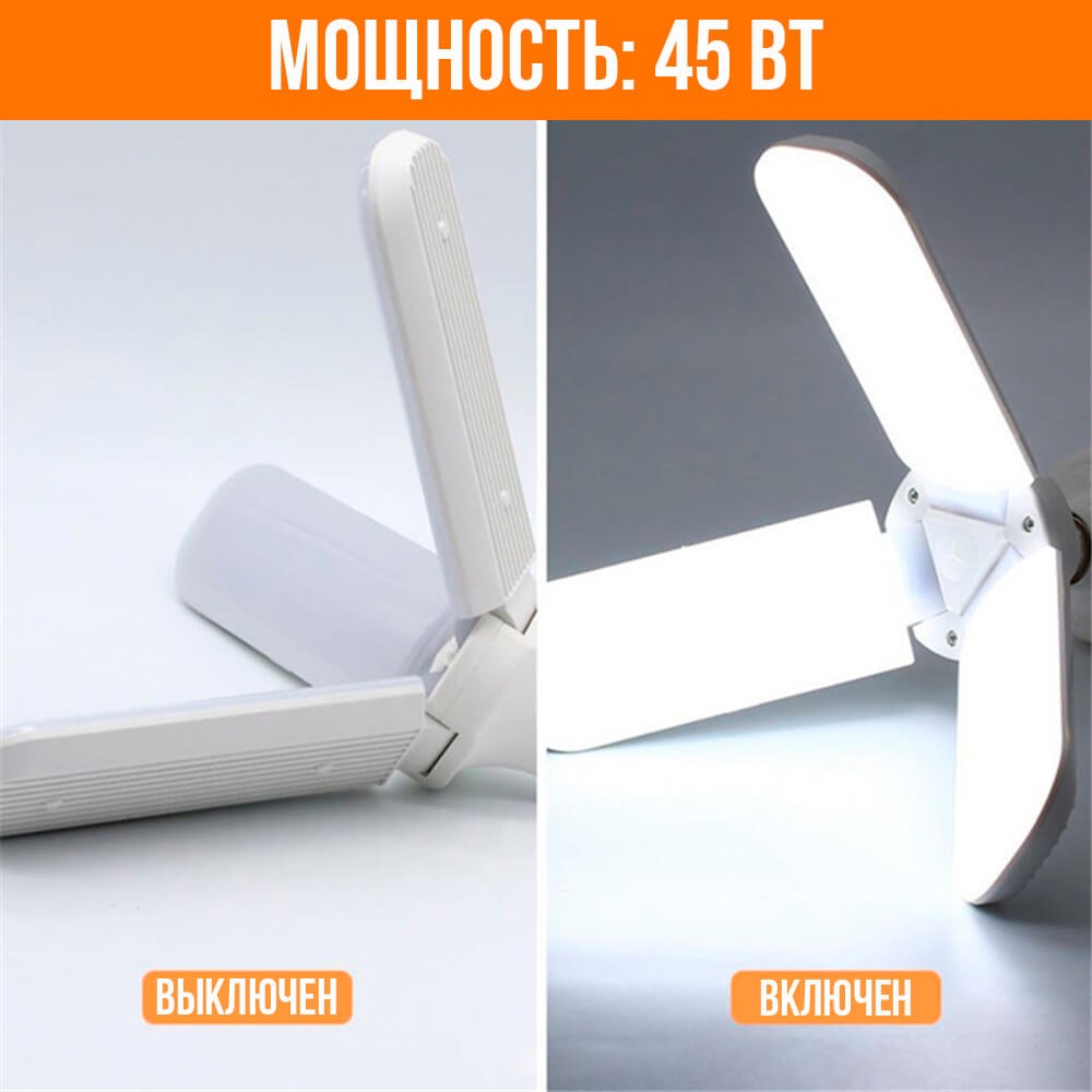 Складная светодиодная лампа выполненная в форме вентилятора (3 лопасти) выглядит просто, элегантно и красиво.