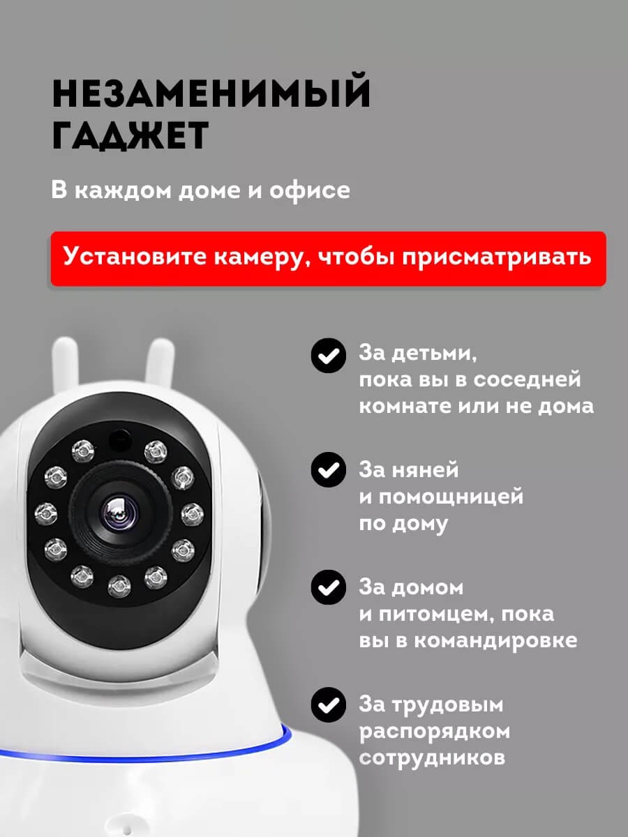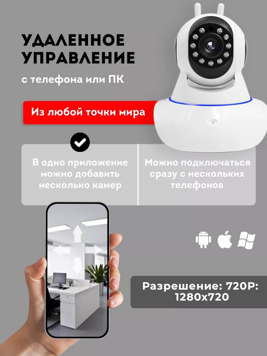 Домашняя камера Wi-Fi управляется с телефона, планшета, компьютера через приложение, из любой точки мира (при наличии интернета).