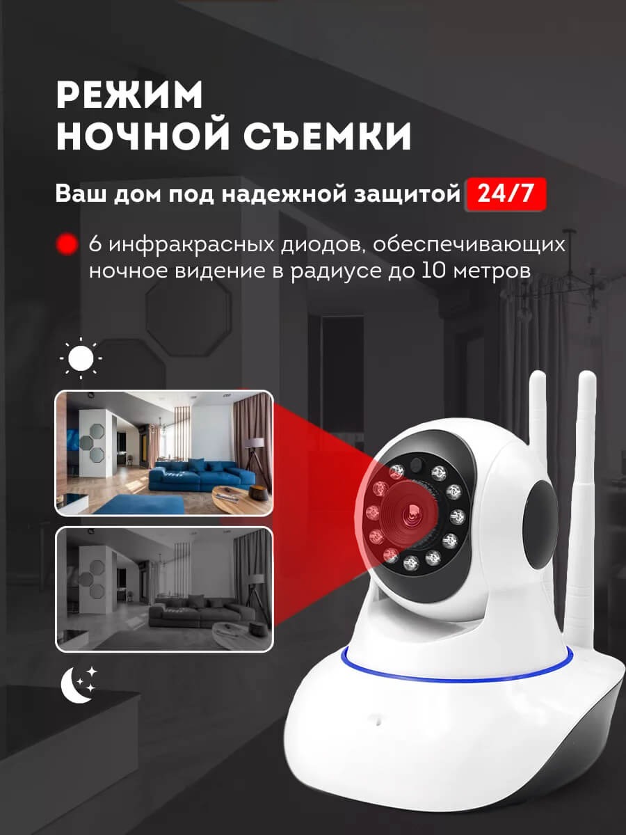 WiFi камера видеонаблюдения поворотная умная с ночным видением и двусторонним аудио - камера Q5 с приложением