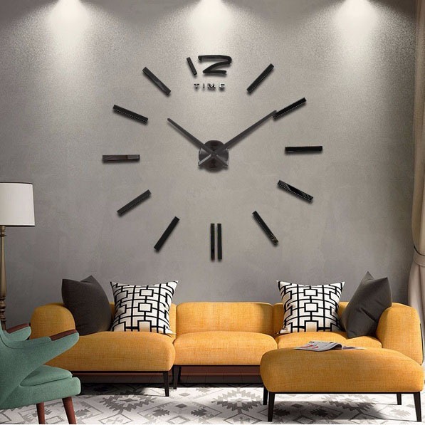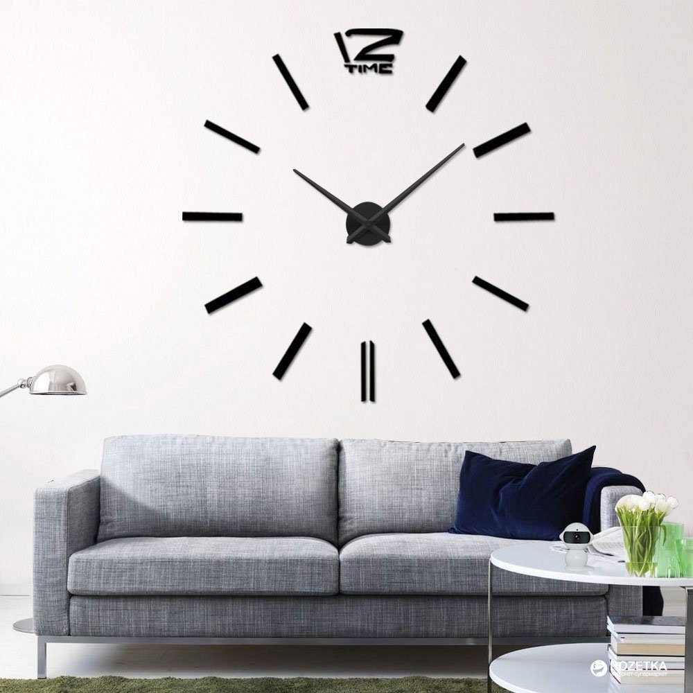 Стильные настенные 3D часы от 60 до 120 см Black.