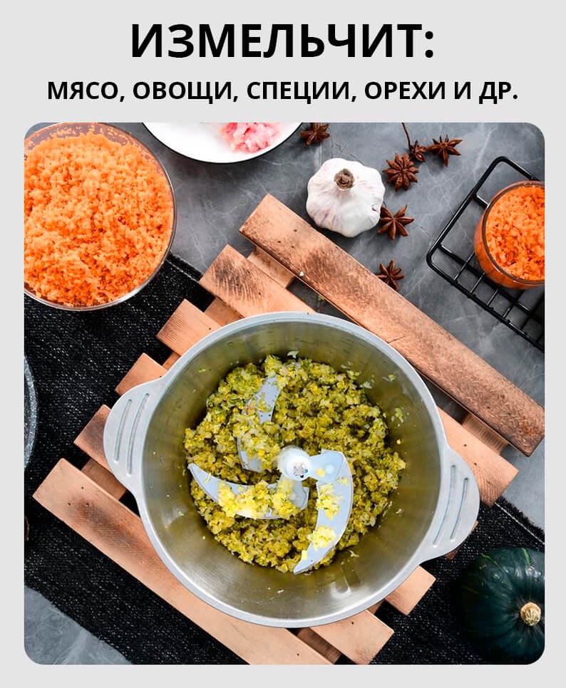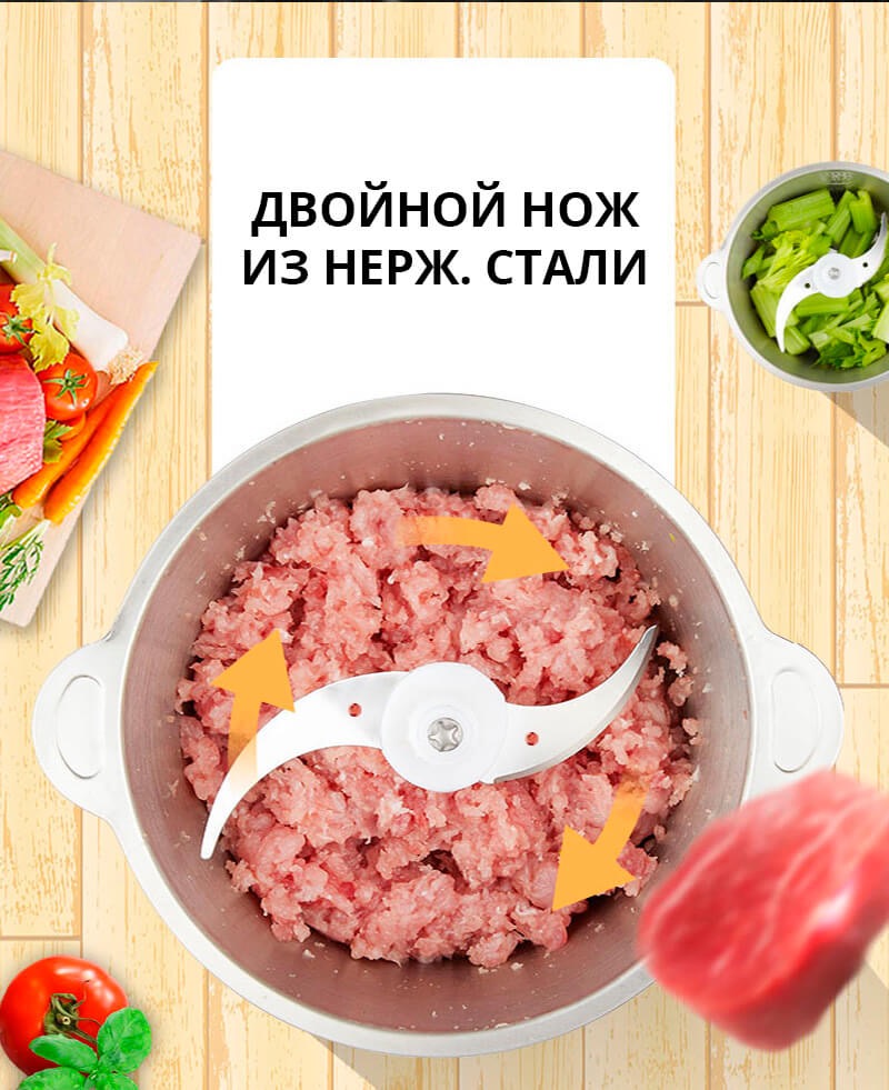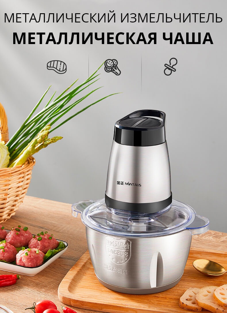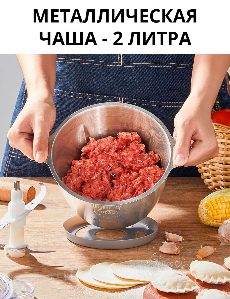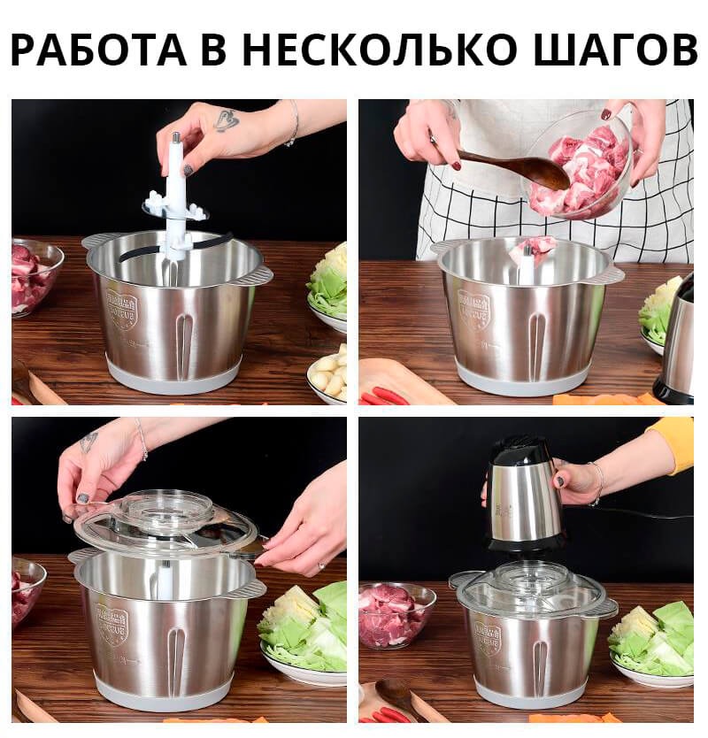 Измельчитель электрический 1500W из нержавеющей стали – универсальный качественный блендер с удобной чашей. В нем Вы без усилий измельчите зелень, овощи для салата, фрукты, ягоды, а также нарубите мясо.