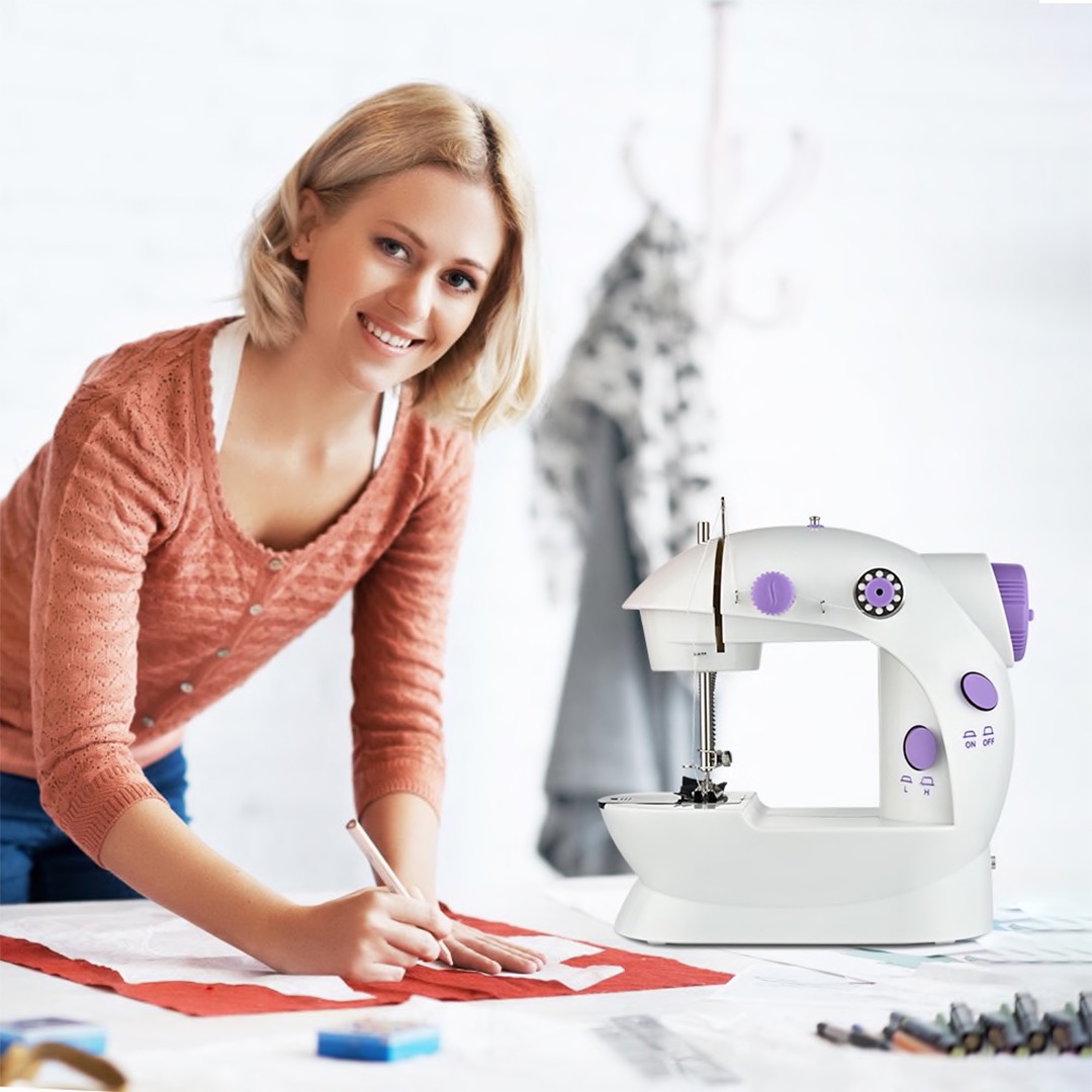 Швейная машинка – это несложная в работе, швейная техника, с которой может работать любая начинающая швея и даже ребенок. Принцип работы устройства очень прост, техника не требует долгой и тщательной настройки перед каждым использованием, в отличие от сложной профессиональной техники. При этом мини швейная машинка позволяет работать практически с любыми видами тканей: от тонких тюлей до джинса, сложенного в несколько слоев.
