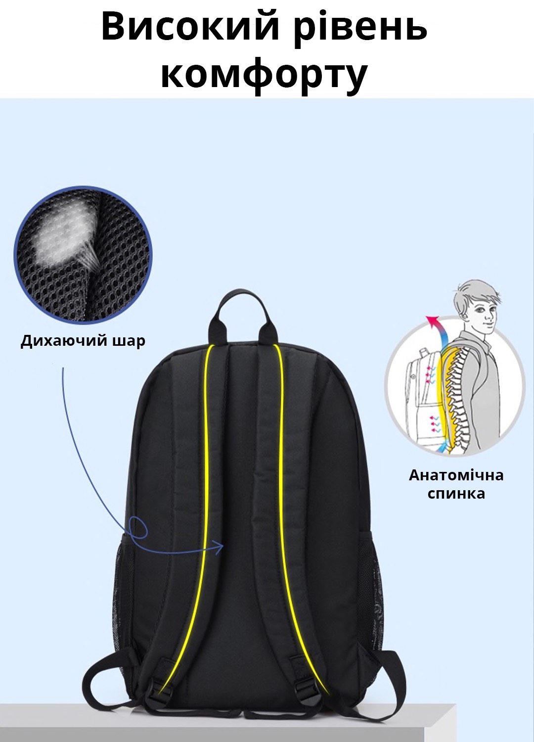 Рюкзак можно брать с собой в школу, на работу, учебу, путешествие, разные кружки, тренировки или повседневные прогулки. Рюкзак практичный в использовании. Его можно носить с помощью короткой ручки в руках, а также на плече с помощью ремешков, которые можно регулировать.