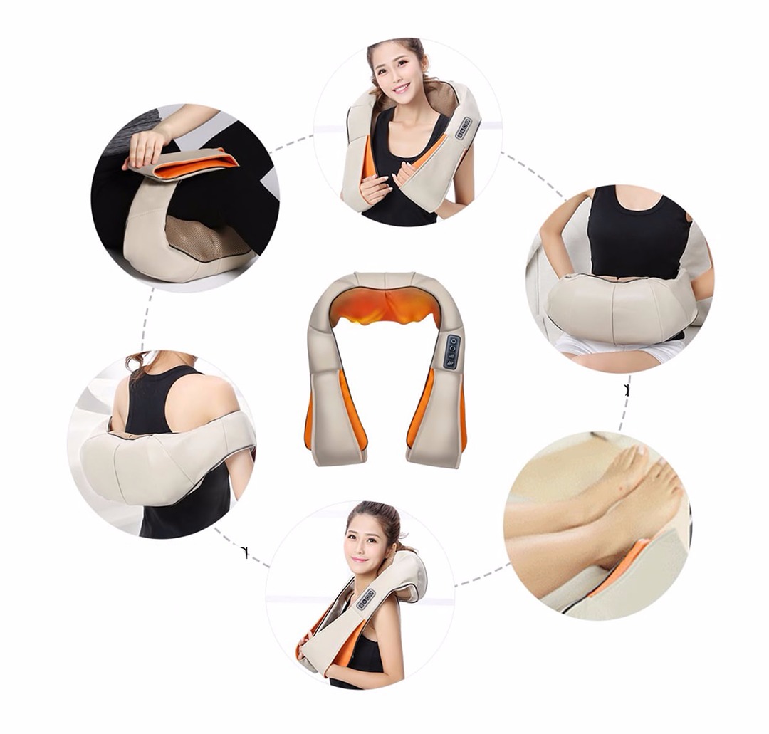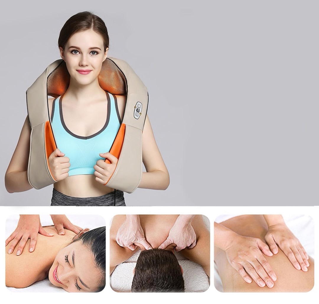 Роликовый массажер с подогревом, электромассажёр для шеи, спины, головы