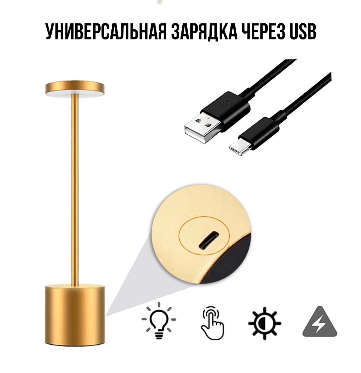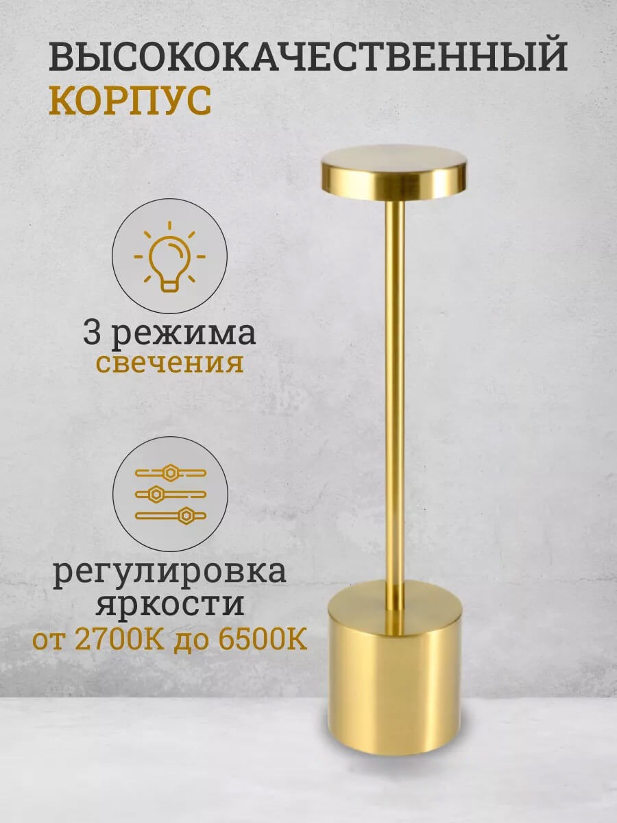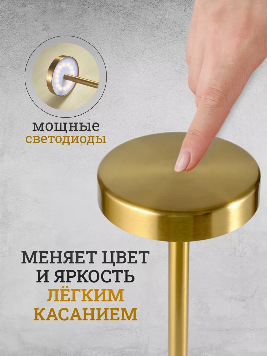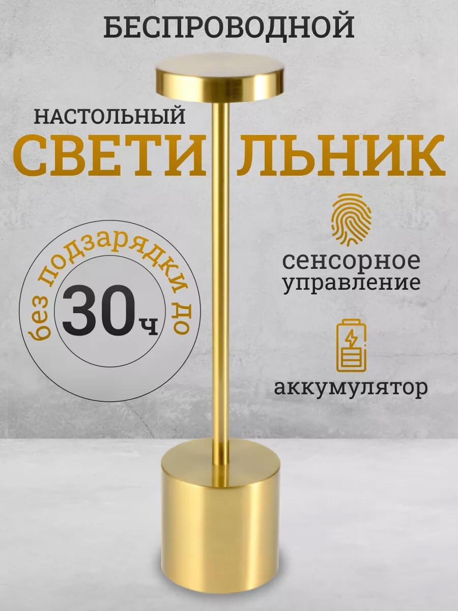Беспроводная сенсорная настольная LED лампа золотого цвета. Для ресторанов, кафе и дома