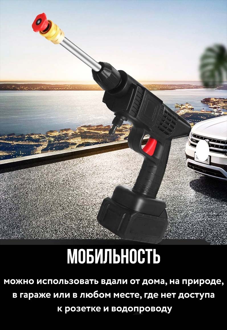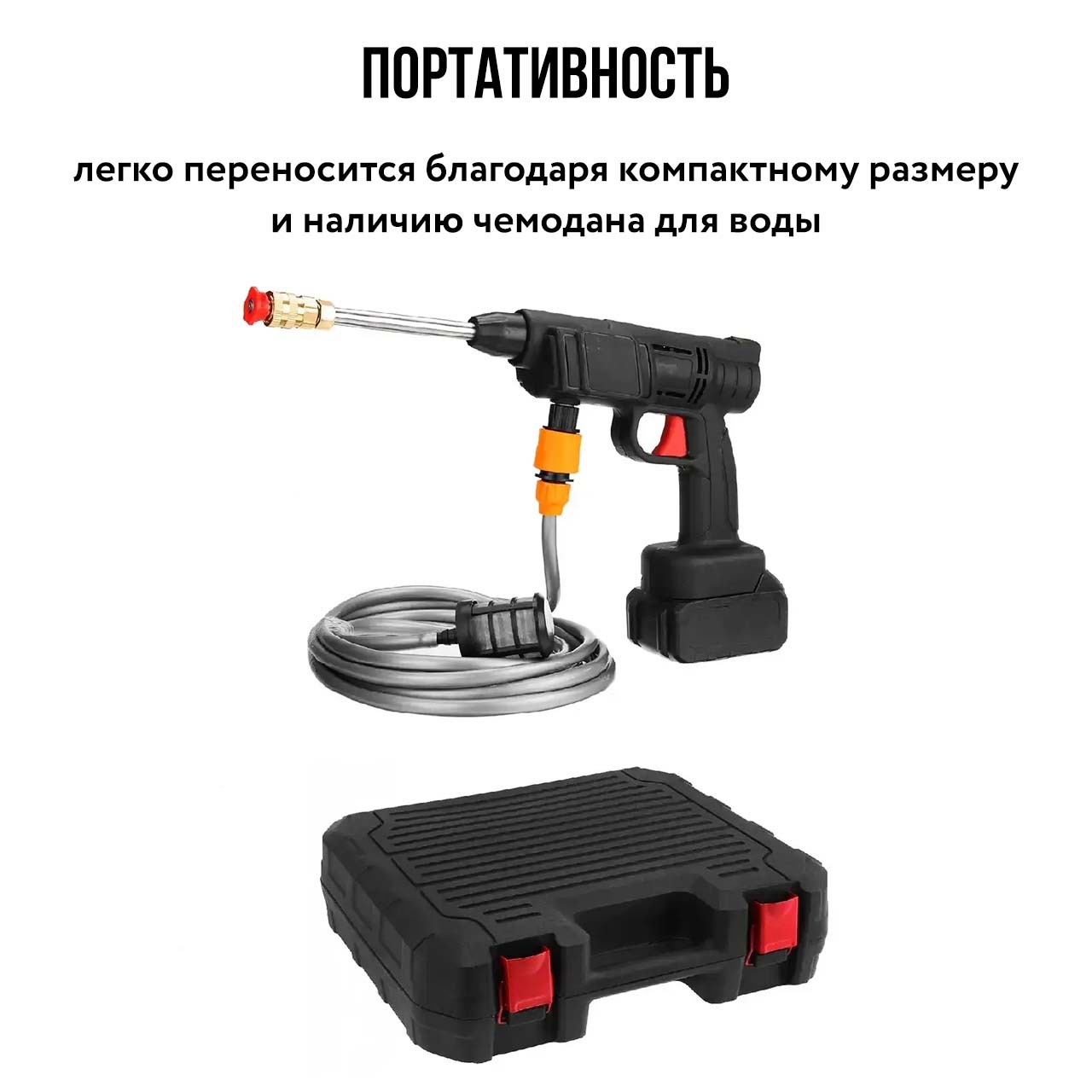 Аккумуляторная портативная мойка высокого давления в кейсе, 2 аккумулятора, насадки в комплекте