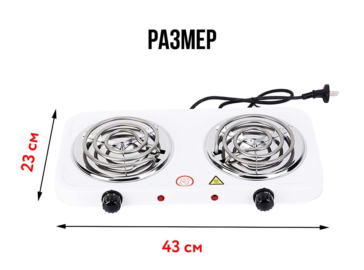 Спиральная электрическая плита на две конфорки 2000 Вт