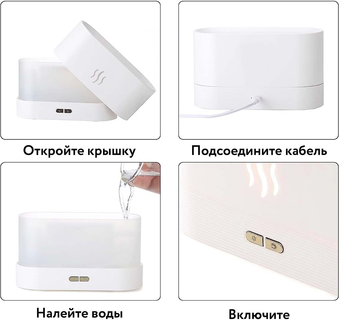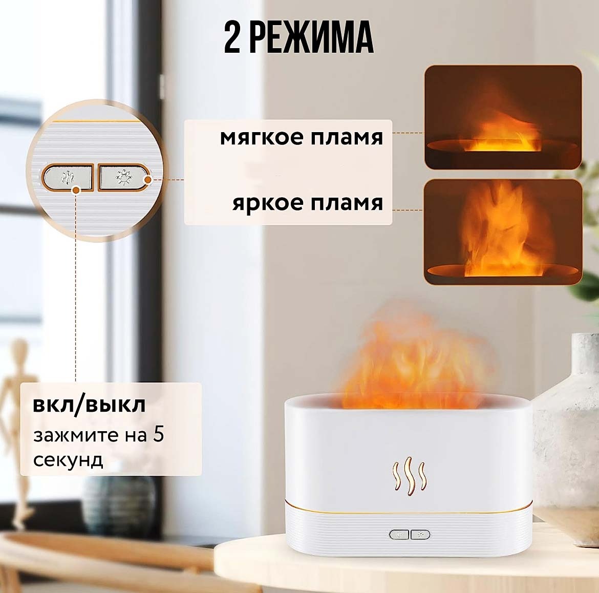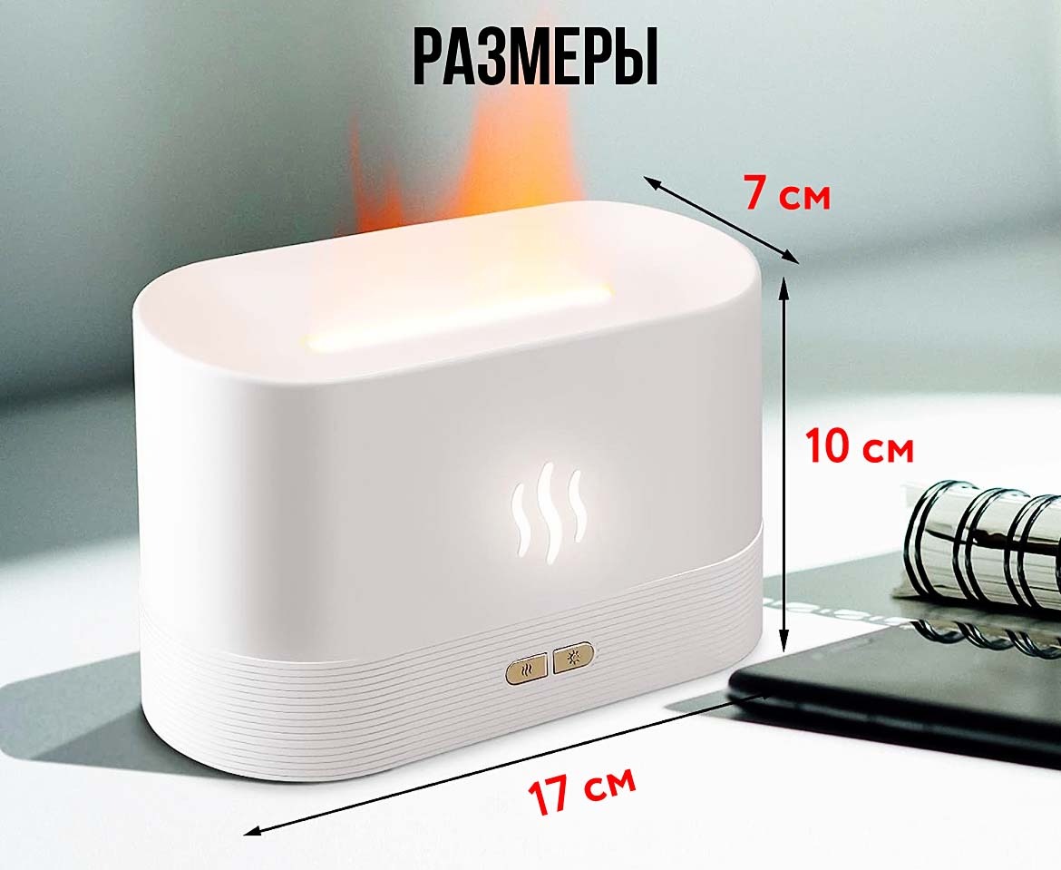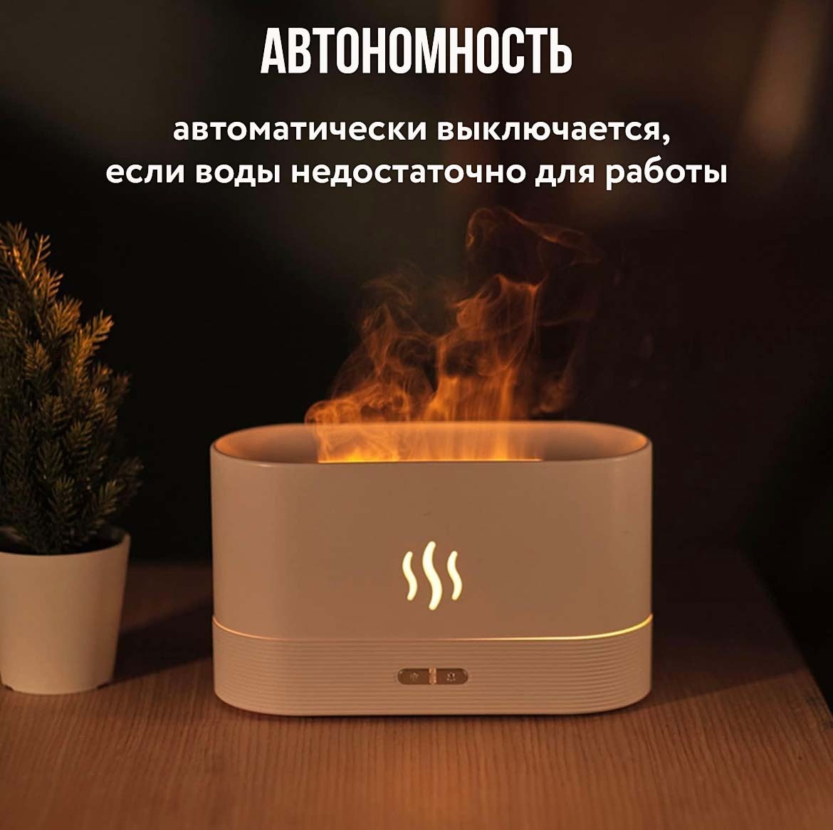 Также может использоваться в качестве аромадиффузора, который распыляет ароматические масла в воздухе, что создает приятную атмосферу в помещении. Функция имитации пламени добавляет эстетическую составляющую, создавая впечатление настоящего огня, при этом не производит никакого тепла, что делает устройство безопасным для использования, можно настроить любой цвет пламени.