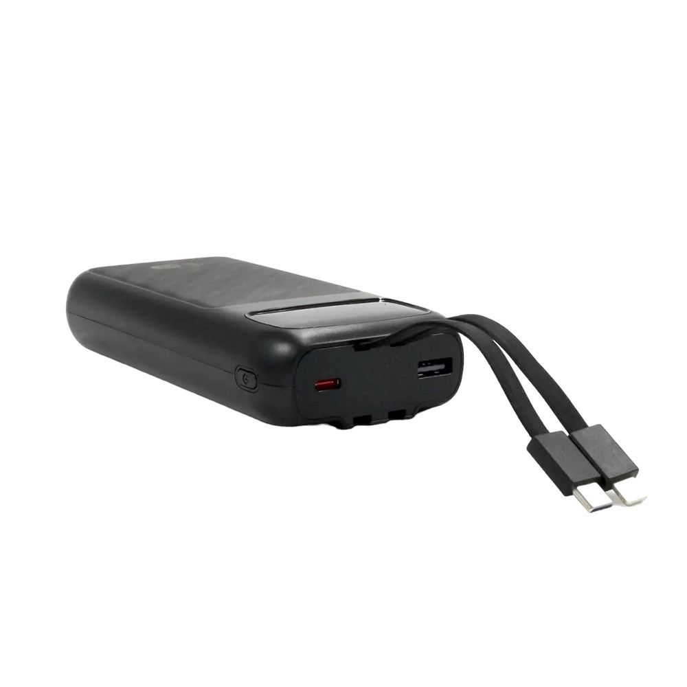 В корпус встроены кабели Type C и Lightning для подзарядки. Одним из явных преимуществ данной модели является дополнительного выхода USB. И поддержка быстрой зарядки, и дисплей показывающий уровень заряда батареи.