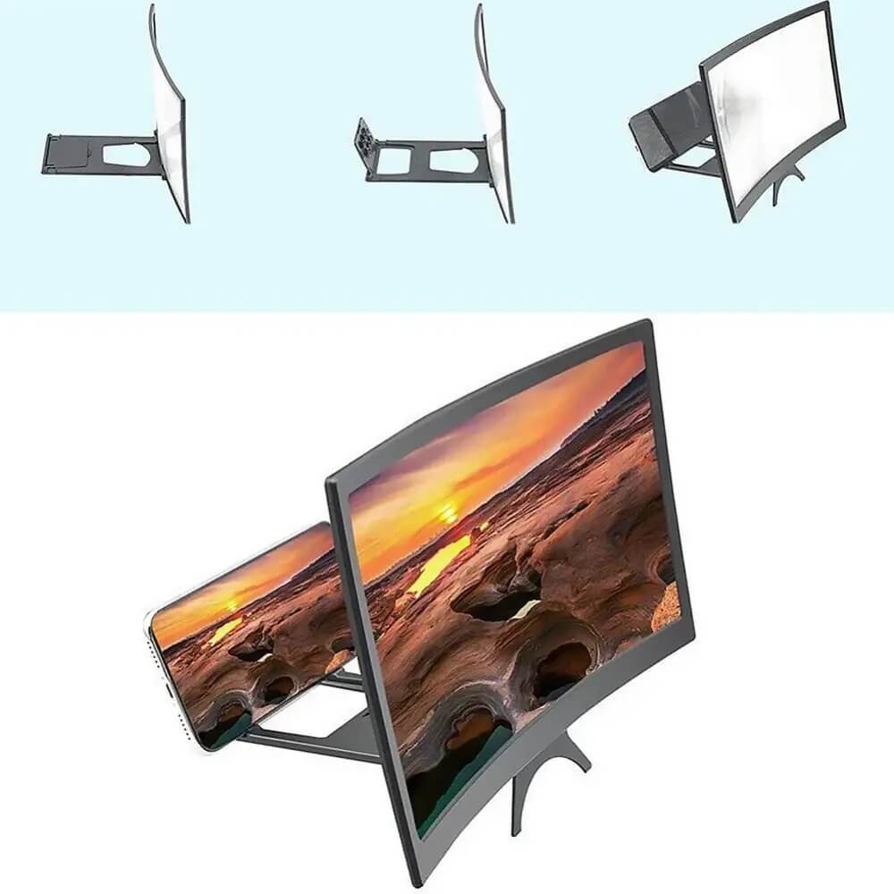 Увеличитель экрана телефона представлен в виде изогнутой рамки и 12-дюймовыми акриловыми линзами высокой четкости. Обладает широким углом обзора, освобождая от необходимости сохранять определенную позу при просмотре, позволяя комфортно перемещаться и все равно наслаждаться увеличенным изображением высокого разрешения.