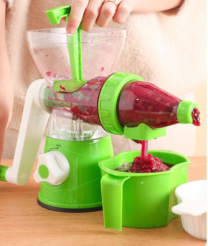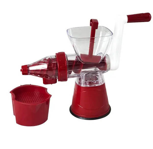 Ручная шнековая соковыжималка из пластика с ручкой и контейнером для фруктов и овощей,Красная