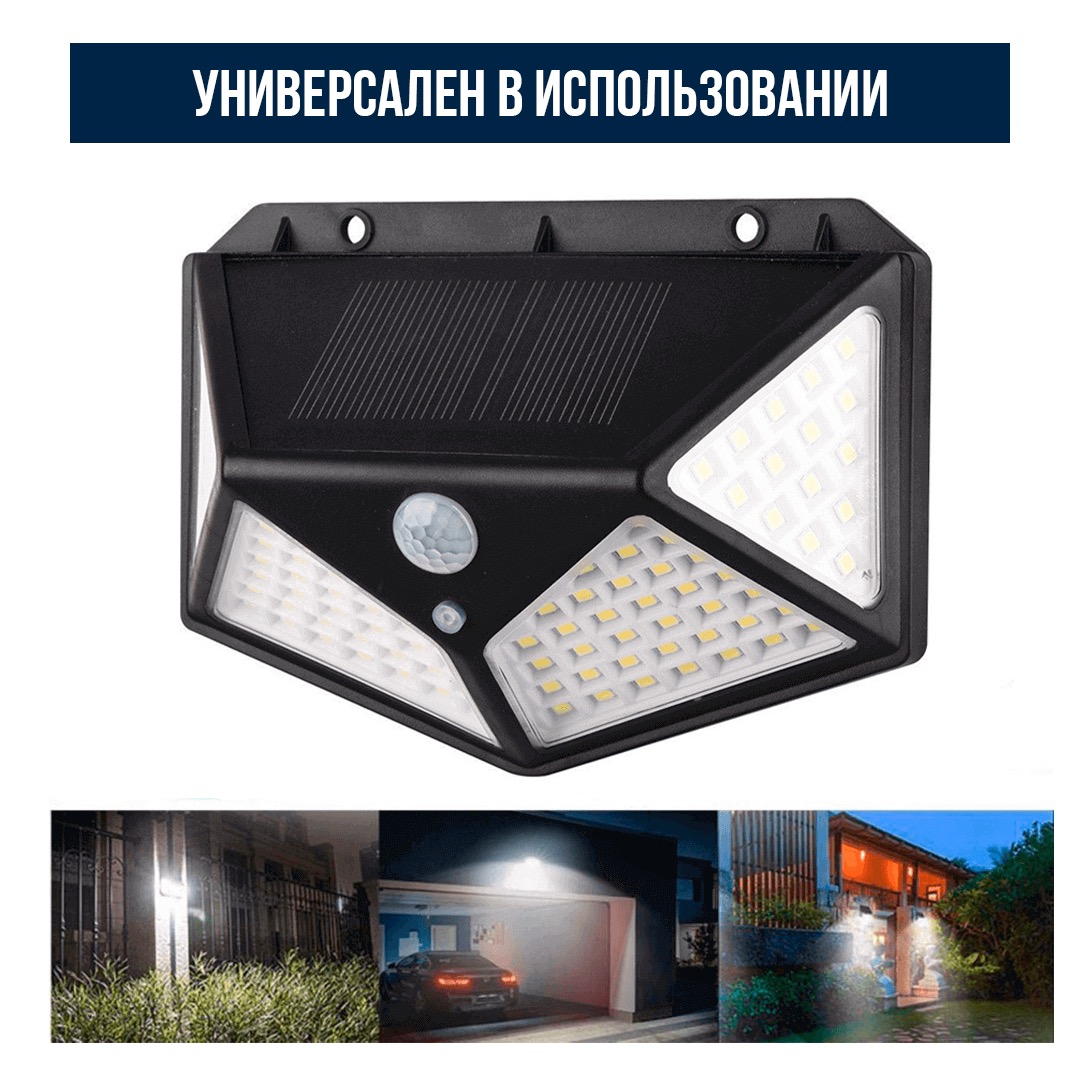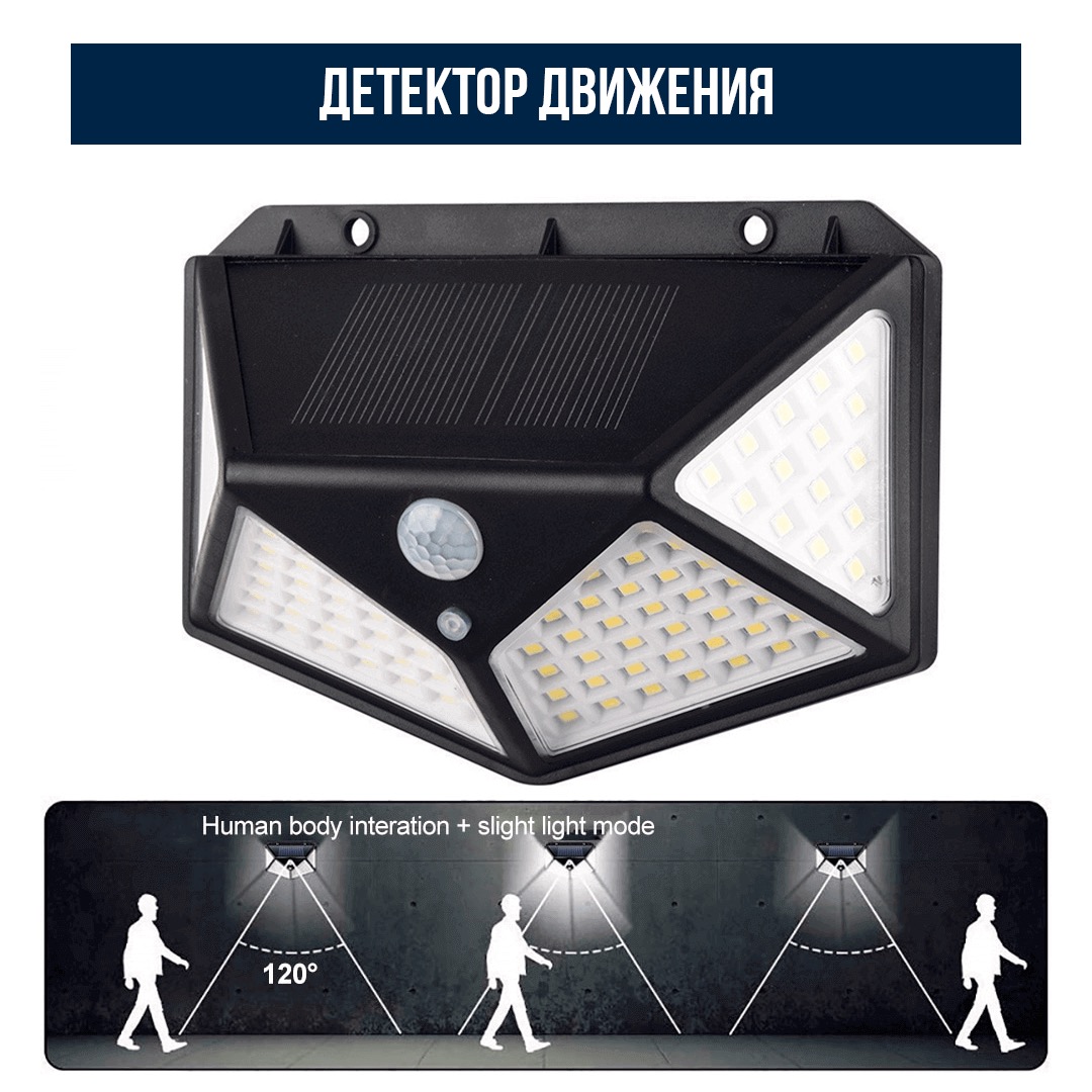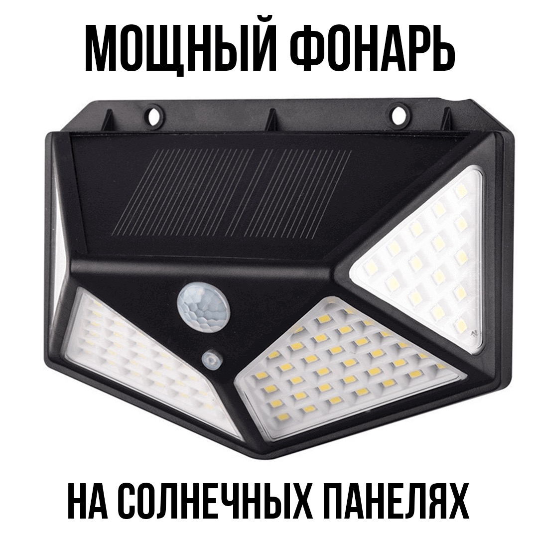 Фонарь-прожектор на солнечной батарее с датчиком движения, 100 LED, настенный, черный