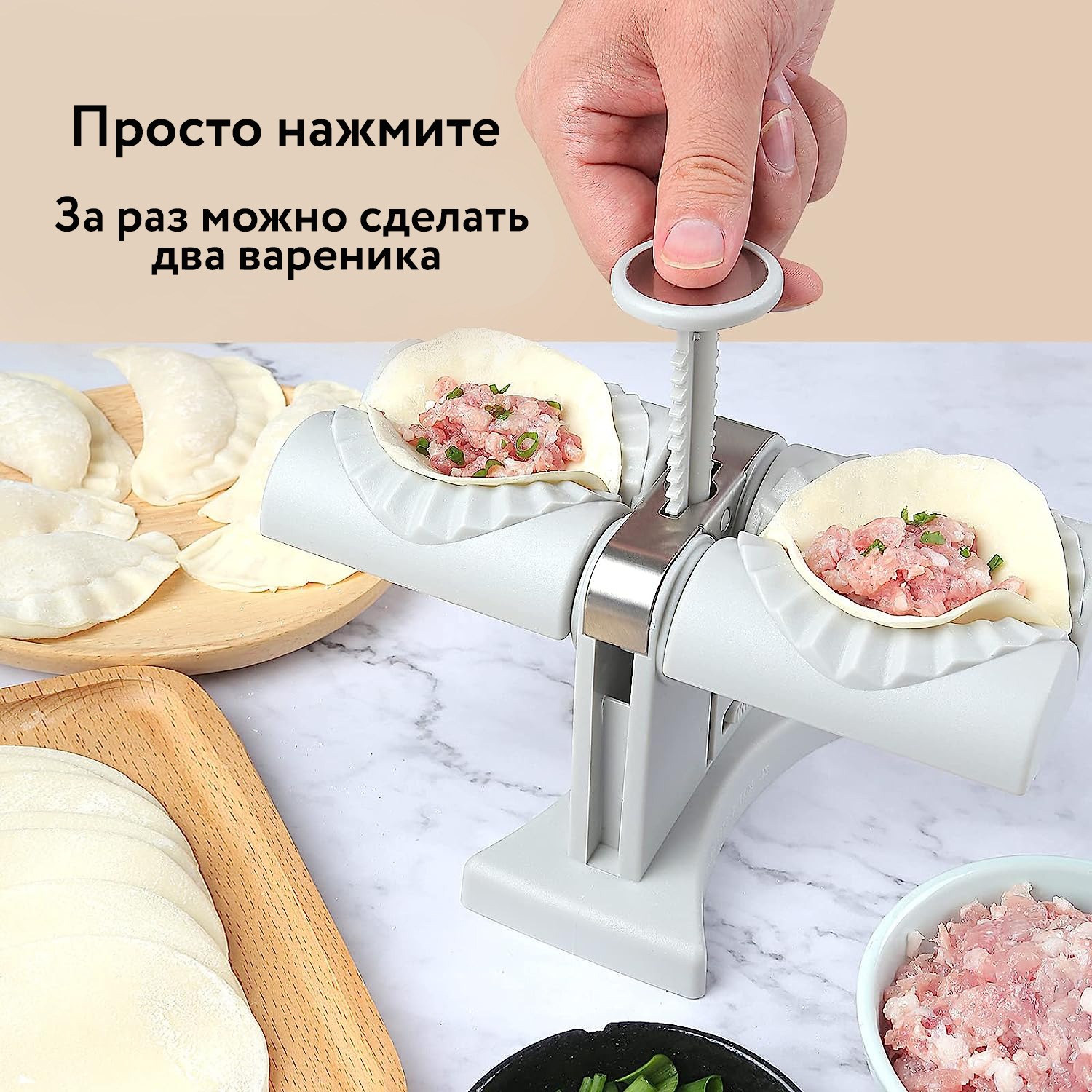 Формовочный станок для кулинарных изделий позволяет легко изготавливать вареники, пельмени, галушки, клецки и другие аналогичные кулинарные изделия. Он изготовлен из высококачественной нержавеющей стали и прочного пластика, что обеспечивает его долговечность. Благодаря противоскользящему резиновому коврику на основании, он устойчив и легок в использовании, даже для новичков. Станок имеет волнистый край, имитирующий ручную работу, что позволяет создавать красивые вареники за короткий промежуток времени. Вы можете использовать различные виды начинки и заворачивать два круга за один раз для быстроты. Очень легко мыть после использования, просто промойте его водой. С двойной головкой и новейшим дизайном, он позволяет экономить время и является отличной кухонной игрушкой для семьи.