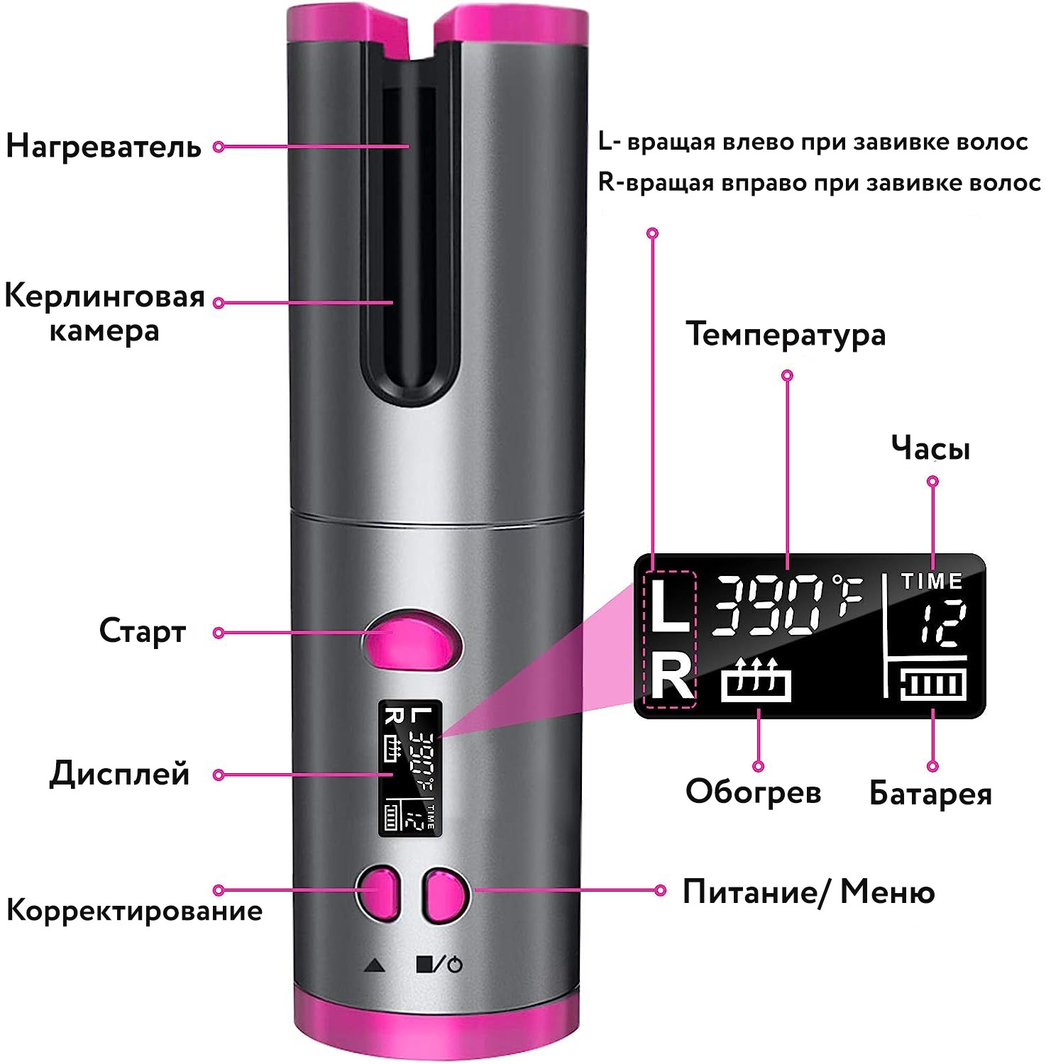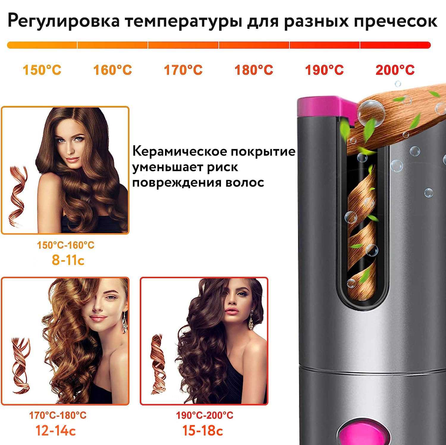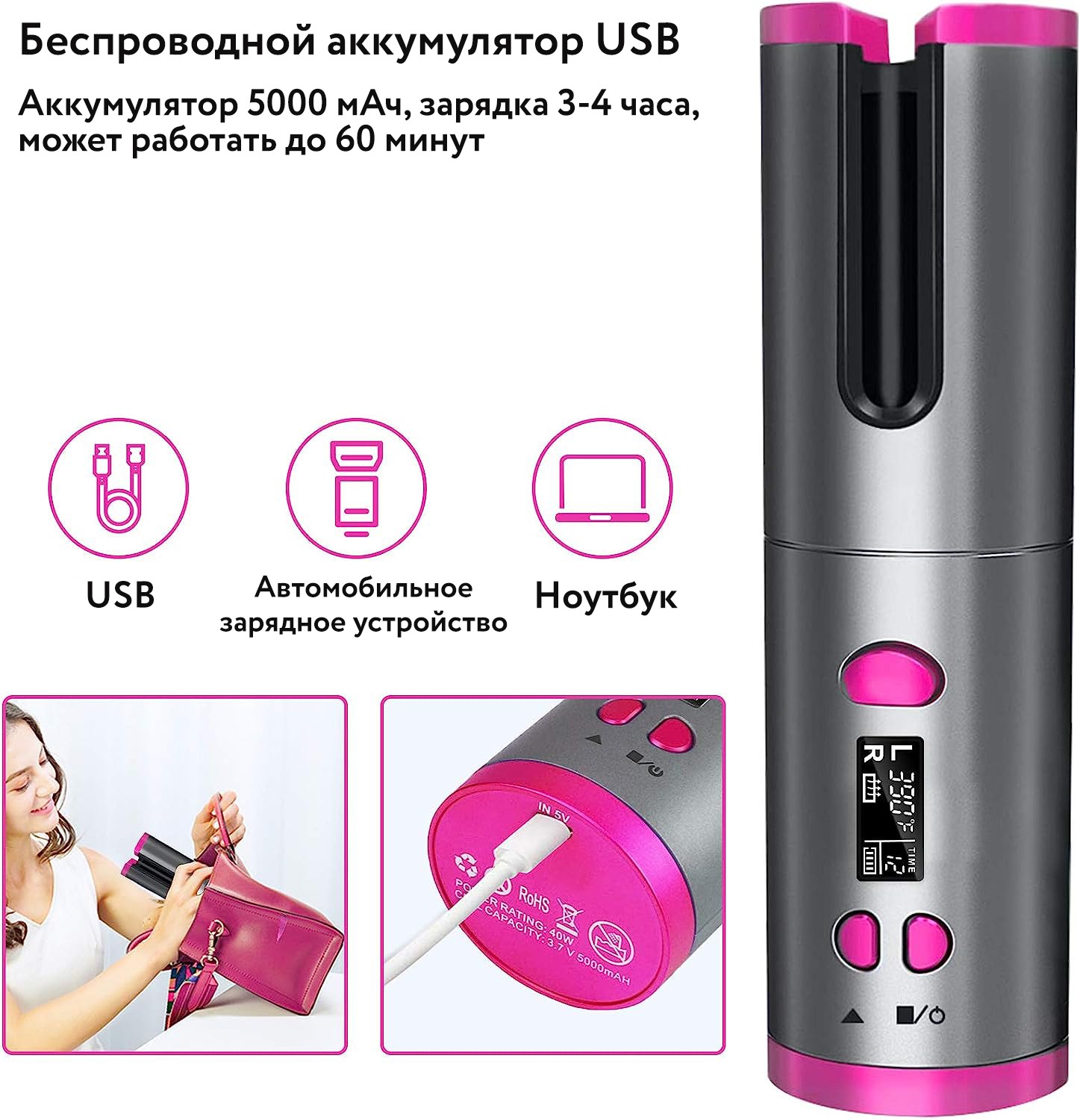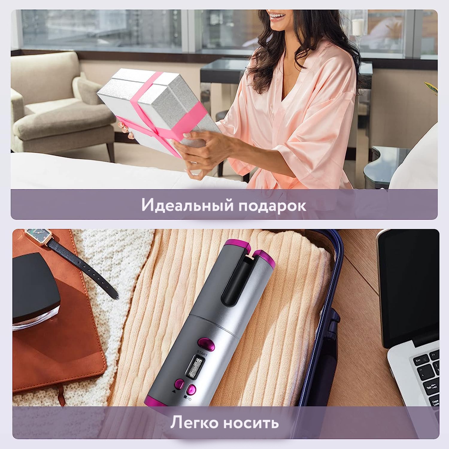 Беспроводная плойка для завивки волос, попрощайтесь с грязным и запутанным дизайном кабеля. Без ограничений кабеля вы можете накручивать волосы где угодно. Не требует навыков, замена традиционной плойки или палочки для завивки.