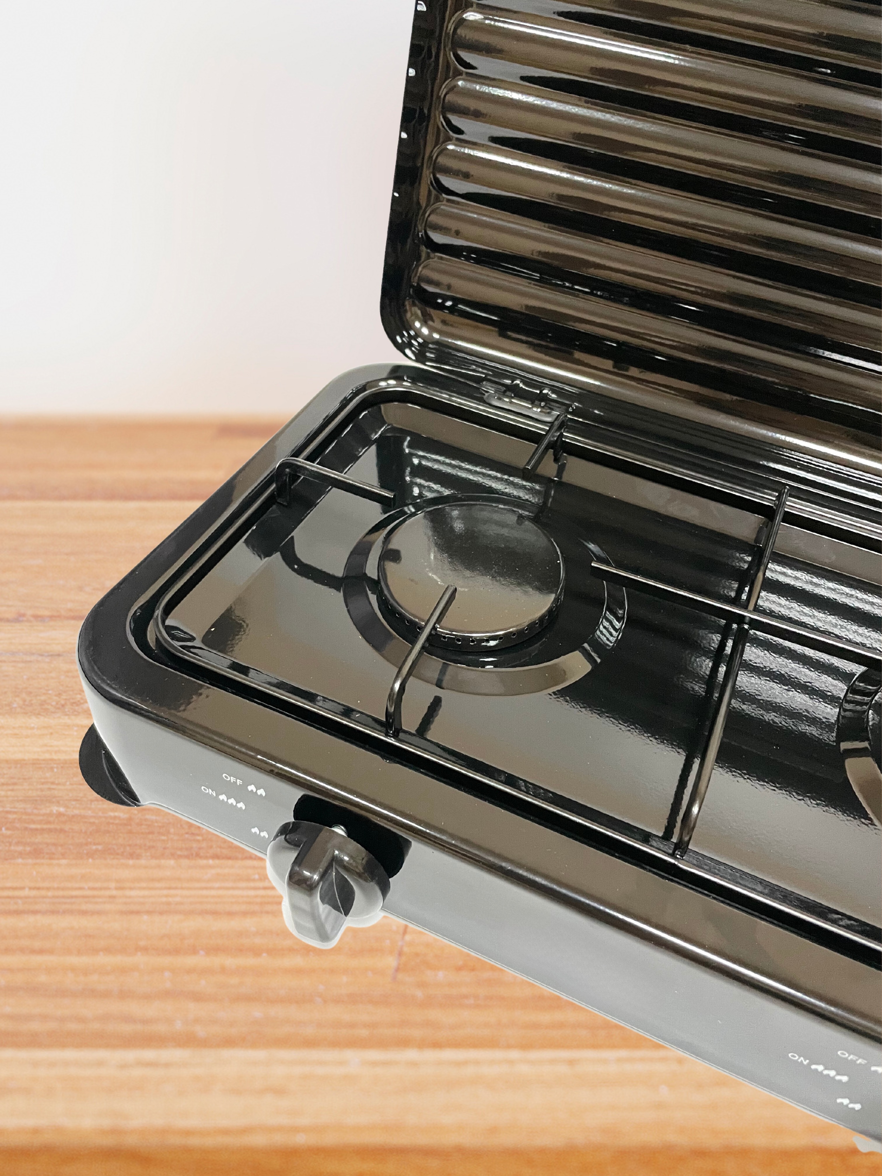Настольная газовая плита имеет практичный и надежный дизайн с устойчивой и крепкой конструкцией, изготовленной из высококачественной стали. Кроме того, она имеет подставку для посуды из чугуна, что позволяет равномерно распределять тепло и обеспечивать оптимальную готовку.
