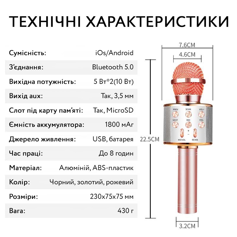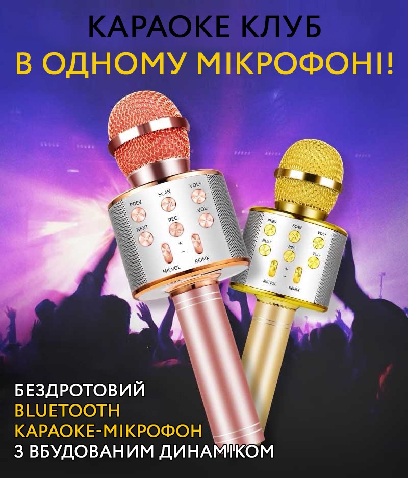 Зустрічайте свята з музикою та бездротовим Bluetooth Караоке мікрофоном! Ви можете співати скрізь - в машині, вдома та за містом.