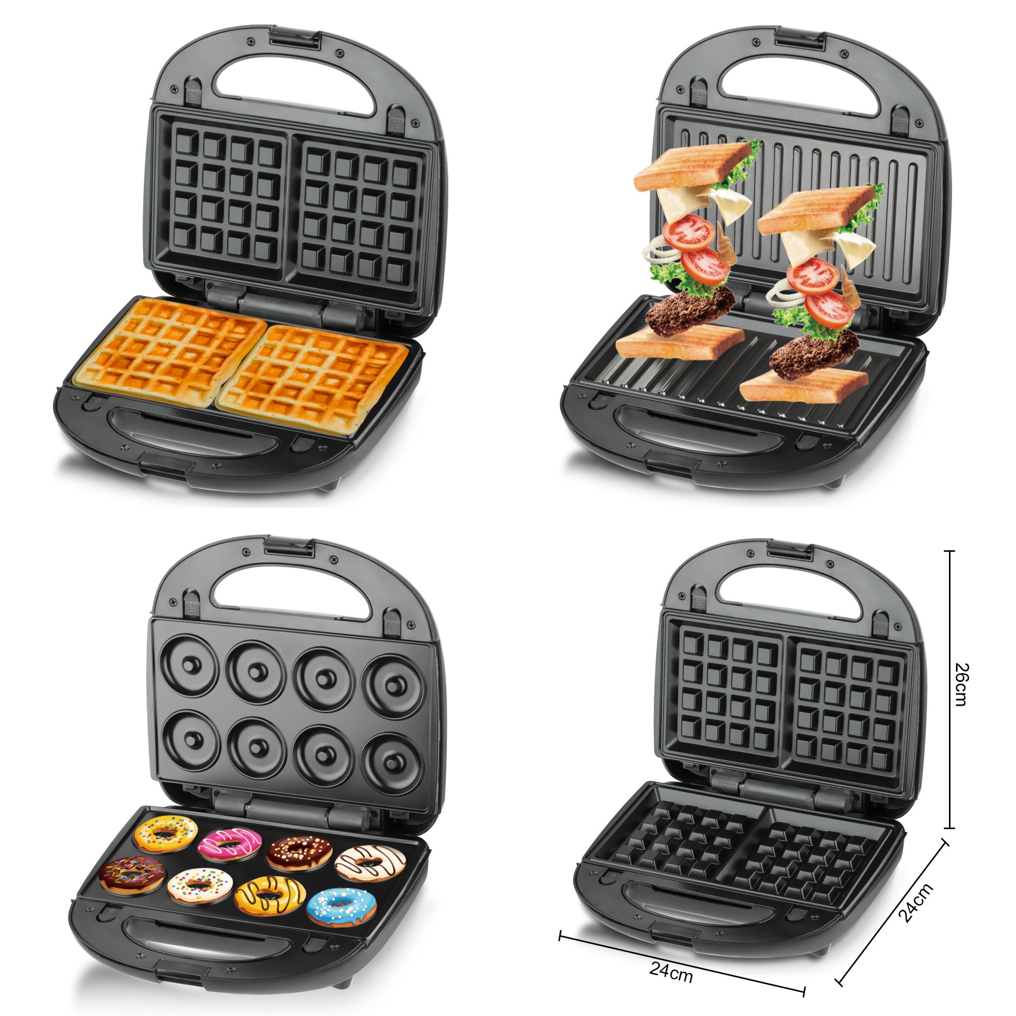 | Тип | Бутербродница, гриль, вафельница |