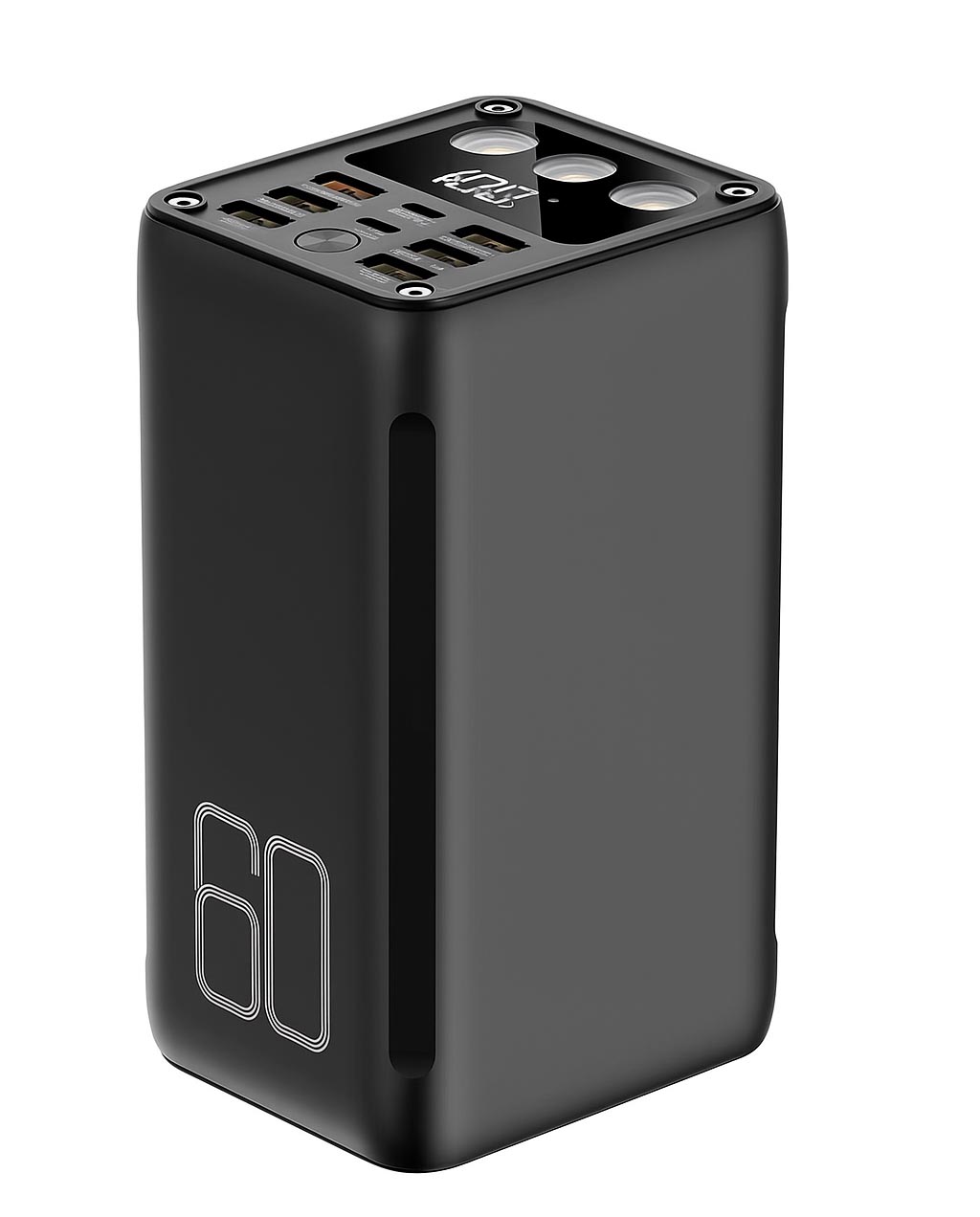 Power Bank 60000 mAh — универсальная мини-станция с фонариком, цифровым дисплеем и быстрой зарядкой 30W