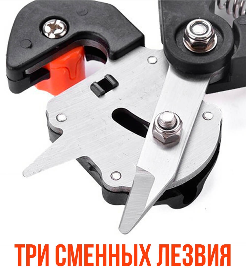 В комплекте с прививочным секатором идут три ножа: