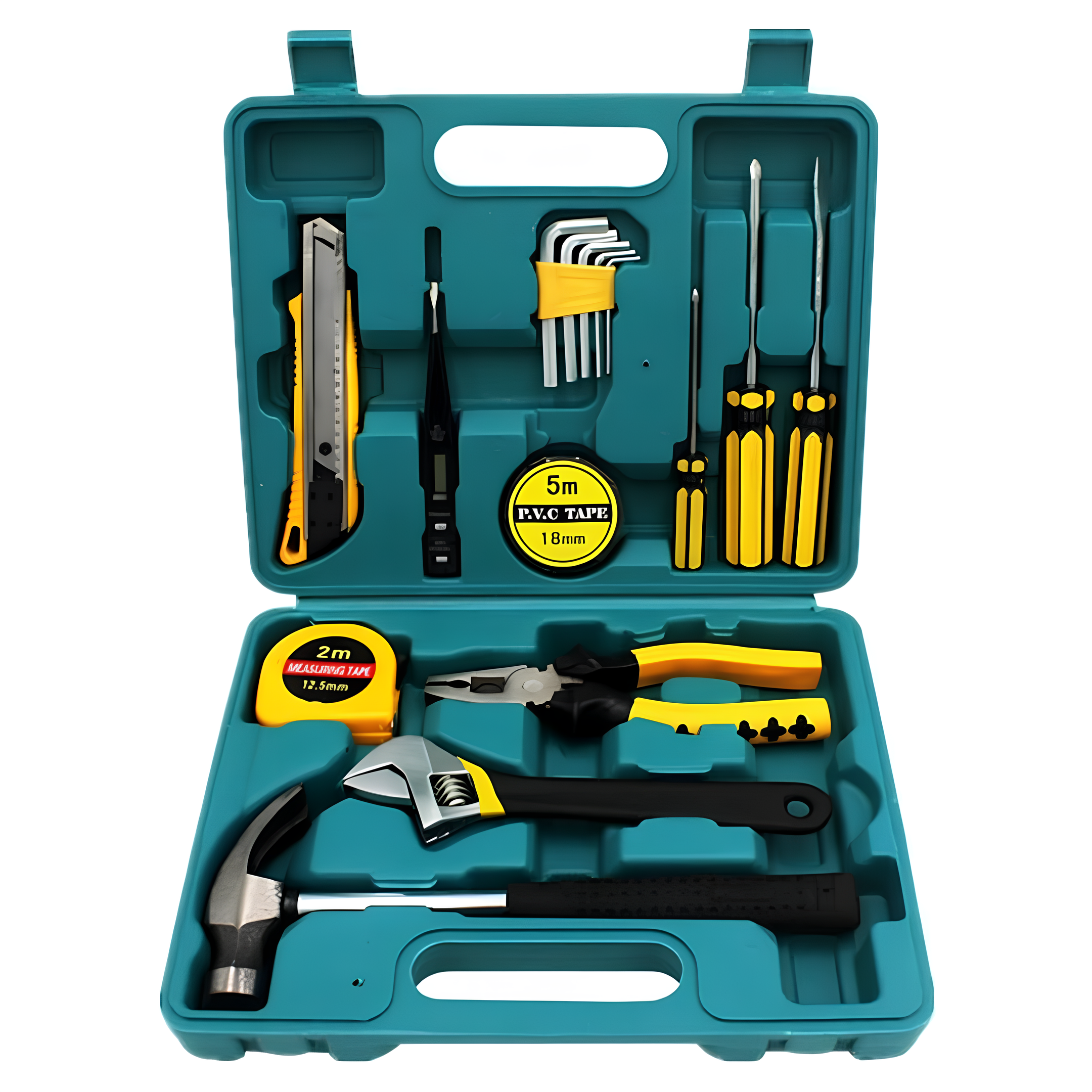 Набор инструментов для ремонта — это практичное и универсальное решение для выполнения бытовых, монтажных и мелких ремонтных работ. Комплект включает самые востребованные ручные инструменты, необходимые для дома, гаража, дачи или офиса. Все элементы аккуратно размещены в прочном пластиковом кейсе, что обеспечивает удобство хранения, порядок и быструю транспортировку. Набор подходит как для начинающих пользователей, так и для повседневного использования в домашних условиях.