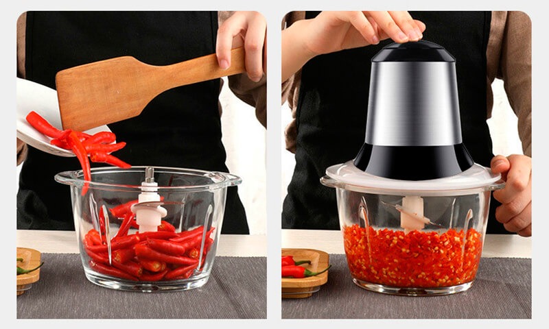 Секрет эффективной и быстрой работы измельчителя заключается в двойном ноже из качественной нержавеющей стали и мощном моторе. Вместительная чаша позволяет готовить большое количество блюд. Она отделена от мотора крышкой, а лезвия легко снимаются. Благодаря этому чашу легко мыть. Для крупной нарезки достаточно всего нескольких быстрых нажатий. Если же вы хотите измельчить ингредиенты, подержите кнопку несколько секунд. Прибор такой мощный, что может размолоть продукты до состояния пюре.