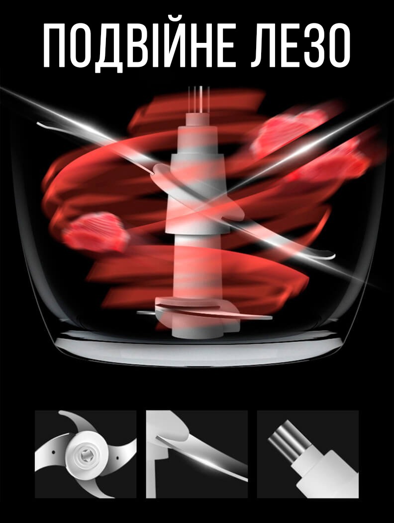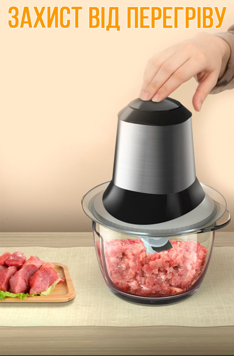 Металевий подрібнювач зі скляною чашею 2 літри 500 ват