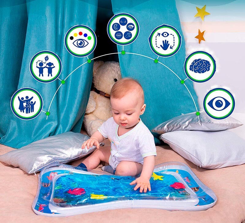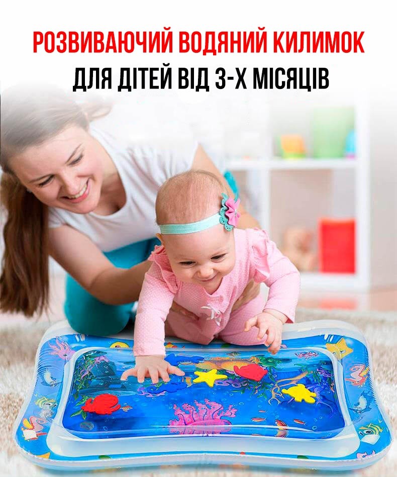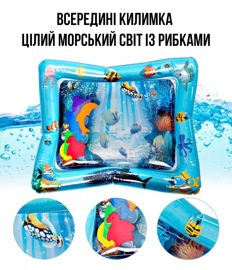 Призначений для дітей з 3-х місяців до 2-х років та вагою до 10 кг. Килимок з водою від бренду Lindo - це цікава і захоплююча пригода для малюка! Завдяки йому дитина розвиває силу м'язів спини, рук, ніг, шиї. Килимок, наповнений теплою водою, допомагає полегшити кольки, якщо викласти малюка на животик. Усередині знаходяться фігурки у формі рибок і морських зірок і коли килимок наповнений водою, то фігурки плавають, привертаючи увагу. Натискаючи або б'ючи по поверхні ручкою, дитина починає захоплюючу гру. Завдяки килимку дитина має можливість пограти з водою без ризику намокнути. А ще килимок дуже компактний і його можна взяти з собою в поїздку. Увага! Через відсутність доступу кисню до килимка у складеному вигляді, має специфічний запах гуми. Перед використанням килимок необхідно вимити з нейтральним дитячим засобом, набрати воду 40 ° C і залишити на добу - запах зникне протягом кількох днів.