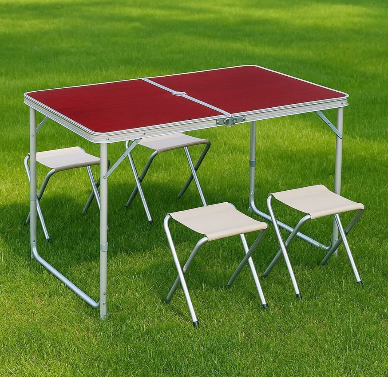 • Алюмінієвий складний стіл з посиленою конструкцією та стільцями, зручний комплект для відпочинку та виїздів на природу