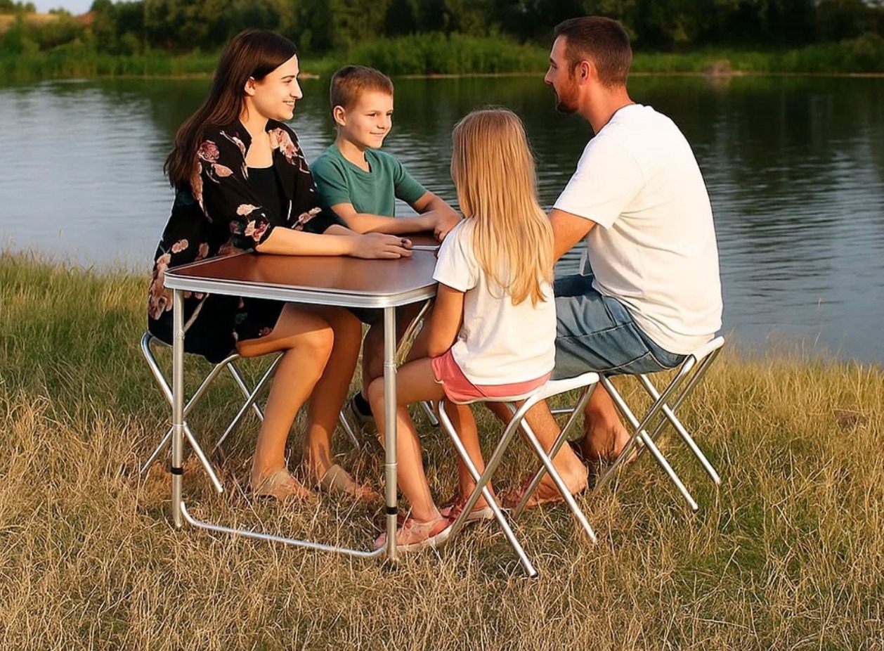 Складаний стіл з 4 стільцями - ідеальний комплект для комфортного відпочинку на природі. Він поєднує компактність, міцність та зручність, дозволяючи організувати повноцінне місце для прийому їжі в будь-яких умовах