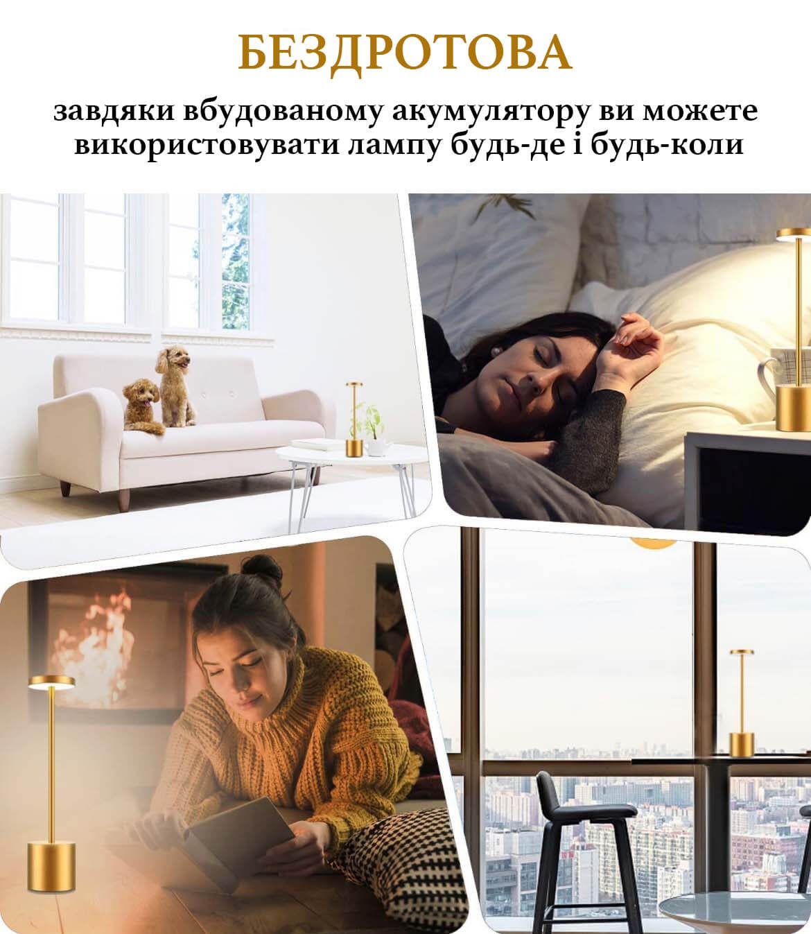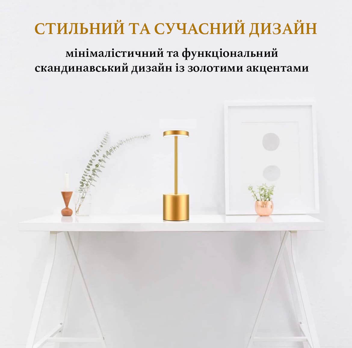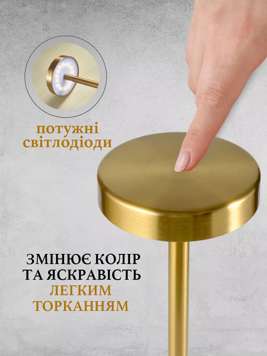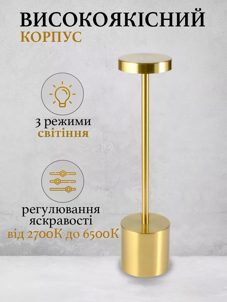 Мінімалістична настільна лампа ефектно підсвітить ваш простір. Завдяки вбудованому акумулятору, ви можете розмістити лампу в будь-якому місці: у спальні, кабінеті, офісі, вітальні, їдальні, кафе, готельних номерах.