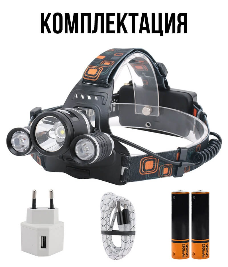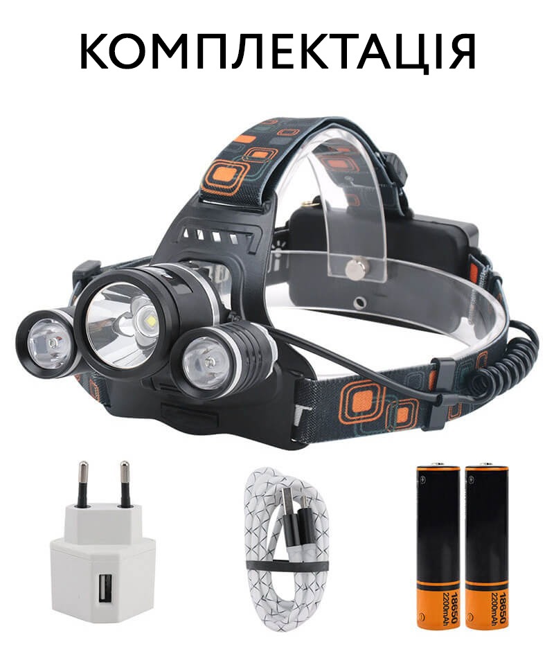 - 3 світлодіоди: 1шт T6 та 2 шт XPE