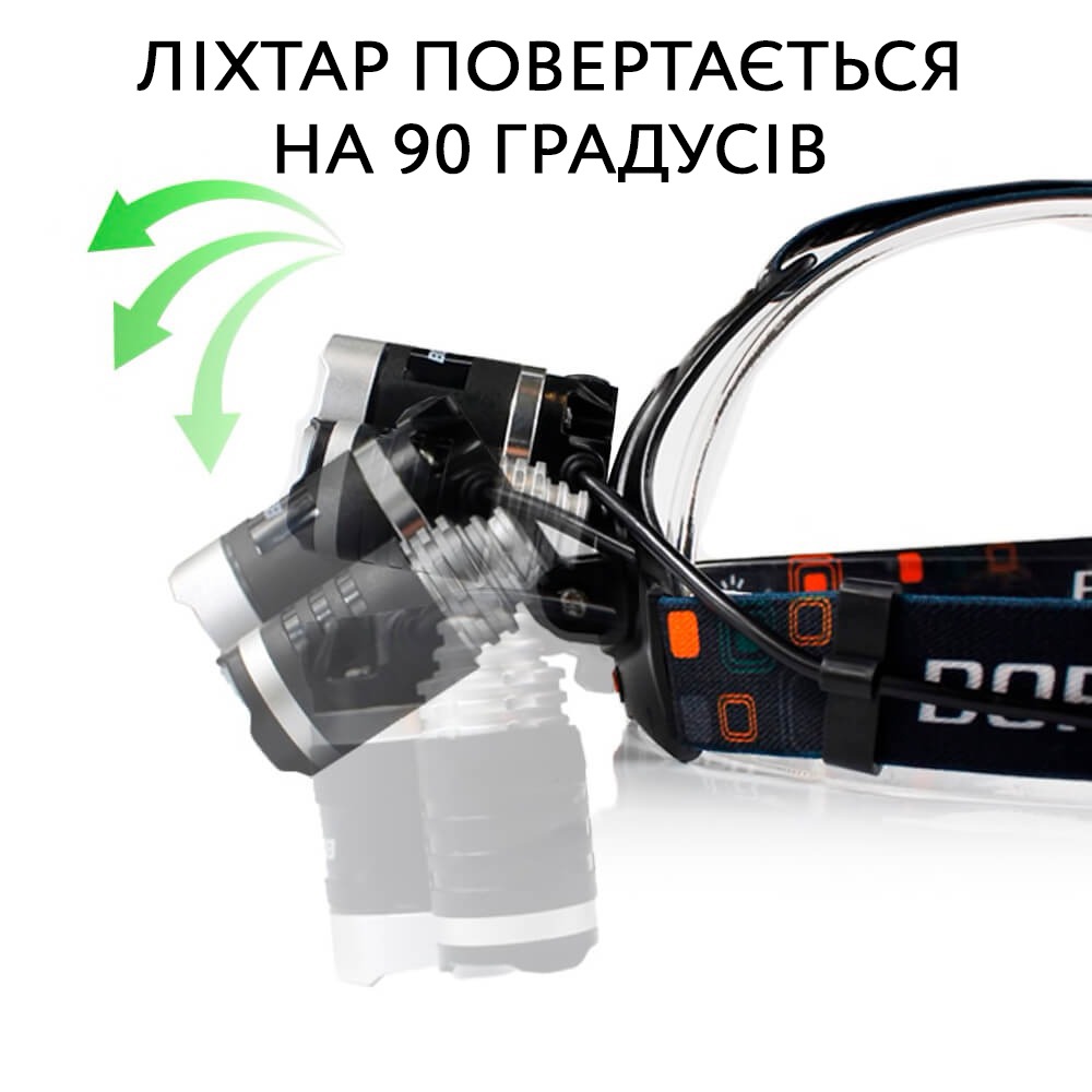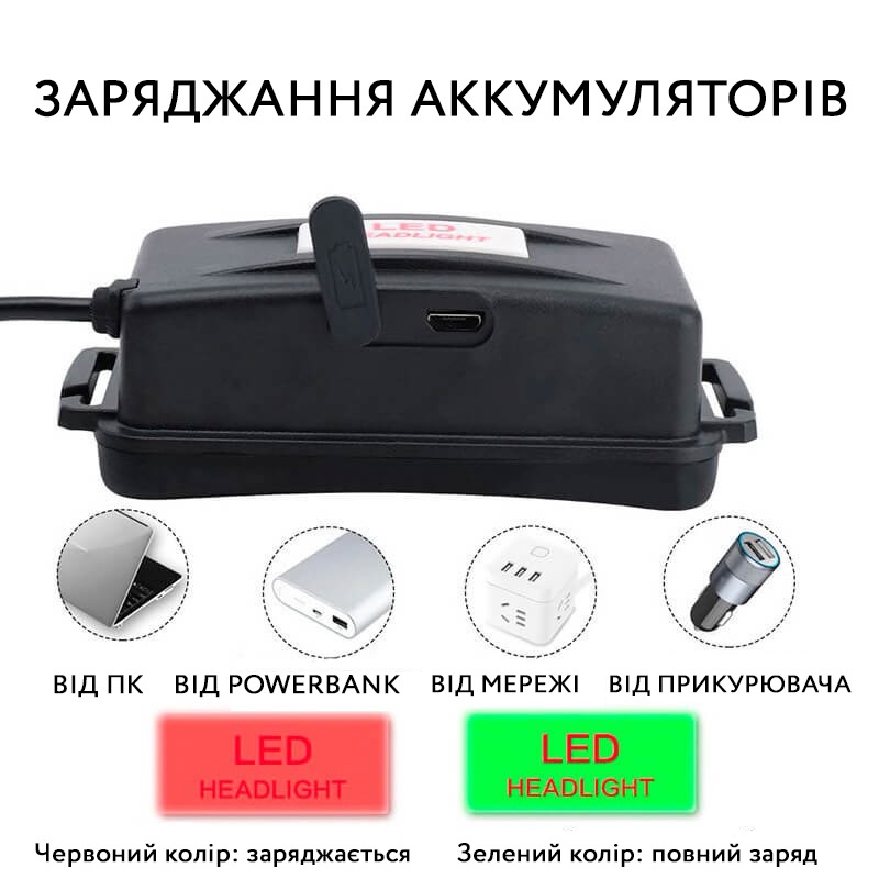 Живлення налобного ліхтаря забезпечують два акумулятори типу 18650, які підзаряджаються за допомогою зарядного пристрою в комплекті. Зарядка підключається до акумуляторного відсіку через закритий гумовою заглушкою роз'єм. Бризгозахищений корпус дозволить користуватися ліхтарем навіть у невеликий дощ.