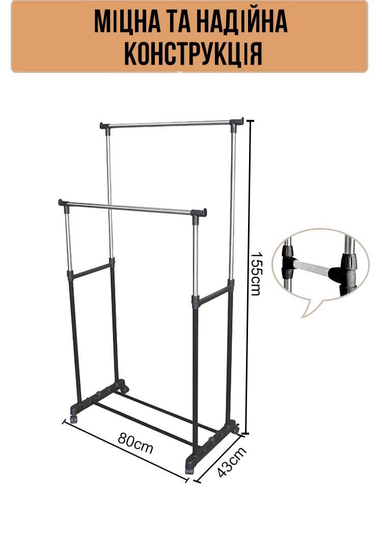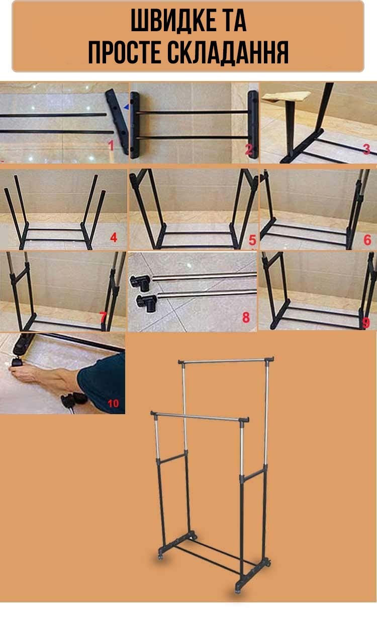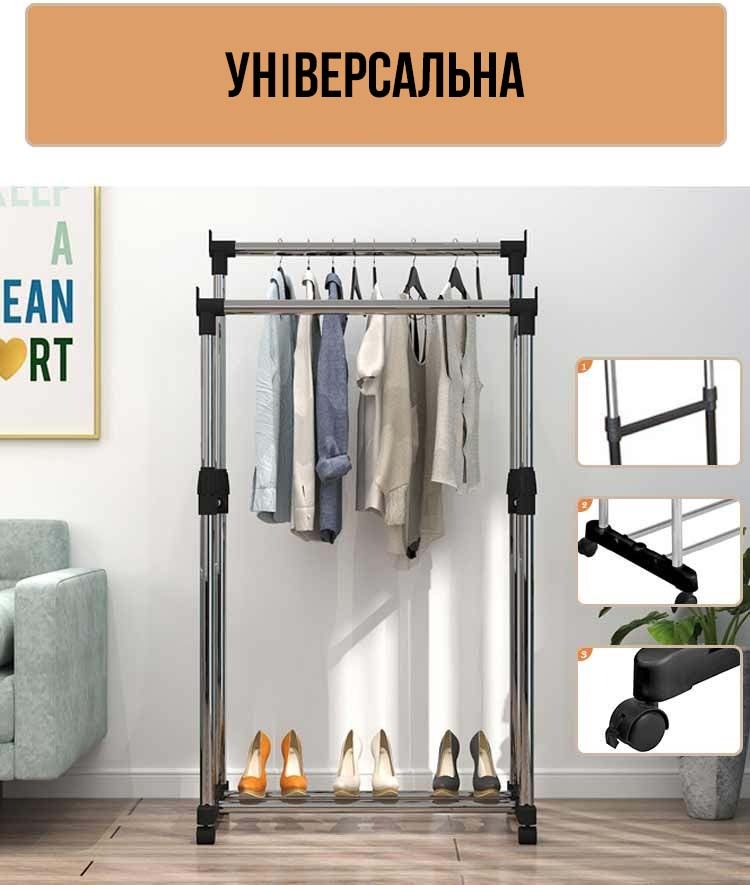 Пропонуємо Вам зручний і вигідний спосіб розміщення якщо не всіх необхідних речей — Стійка для одягу — Double Pole Clother Hose.